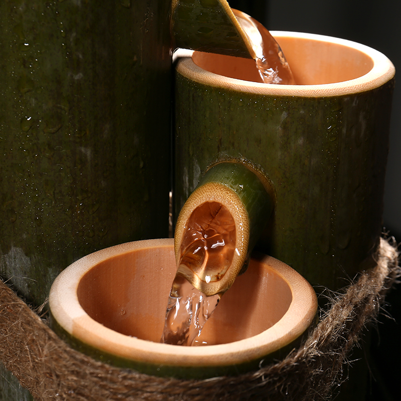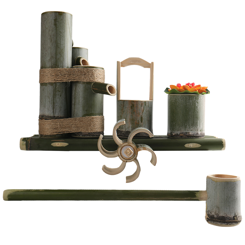 竹子流水鱼缸石槽摆件过滤器招财流水摆件水景装饰开业礼品
