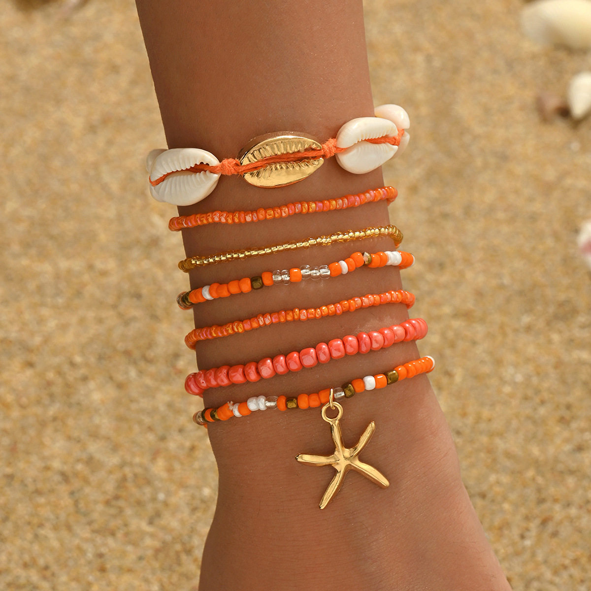 夏日多巴胺手链波西米亚沙滩风手链套装海星米珠贝壳手绳