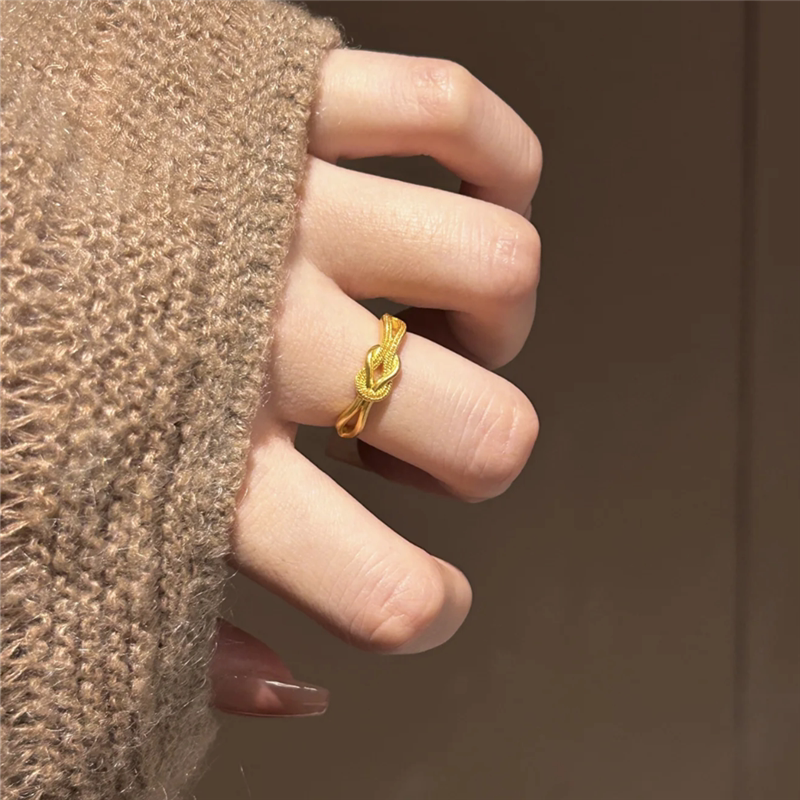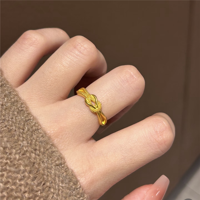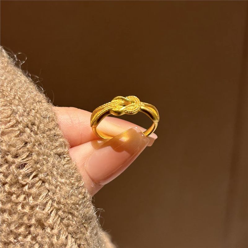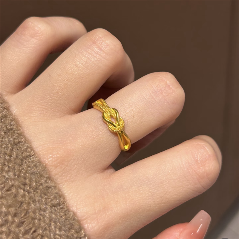 小克重喜结连理同心结戒指仿真黄金色精致复古扭结指环戒子可调节