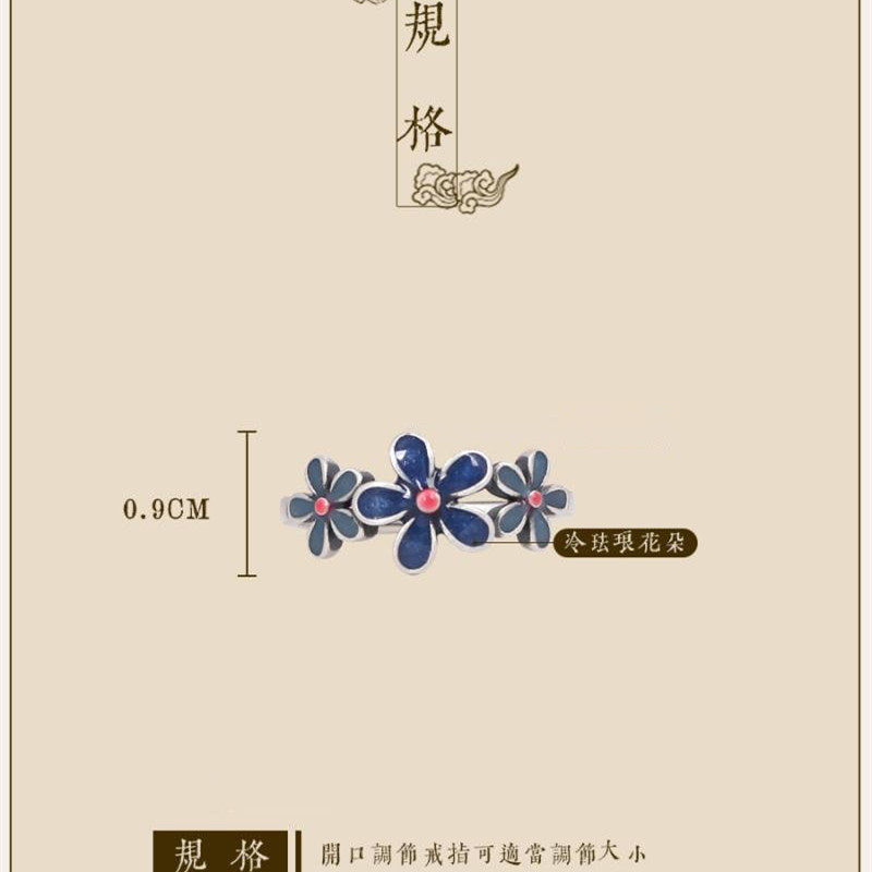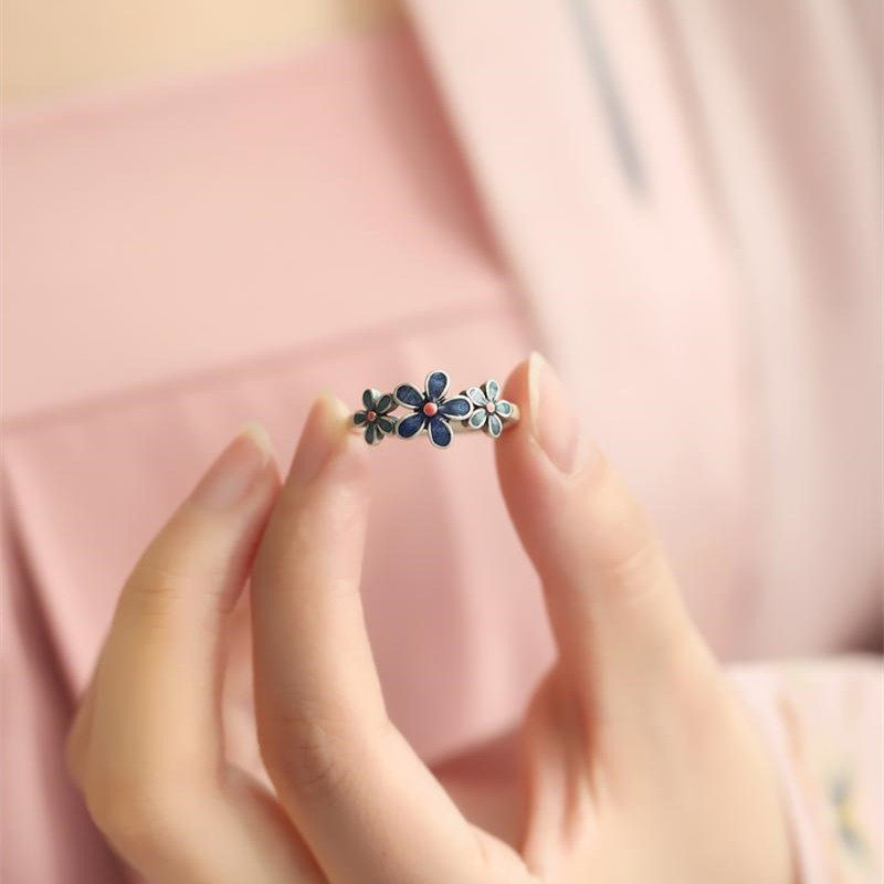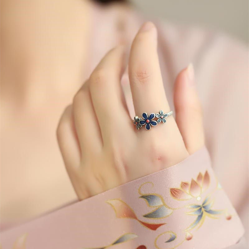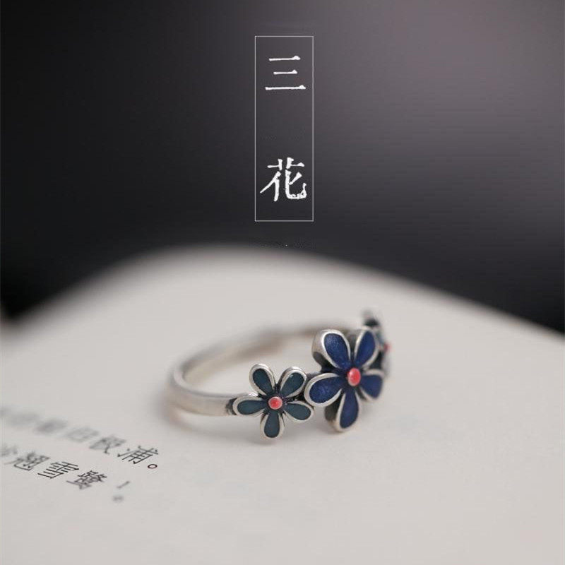 925银高级感百搭三花戒指环女款复古民族风小众设计开口调节简约
