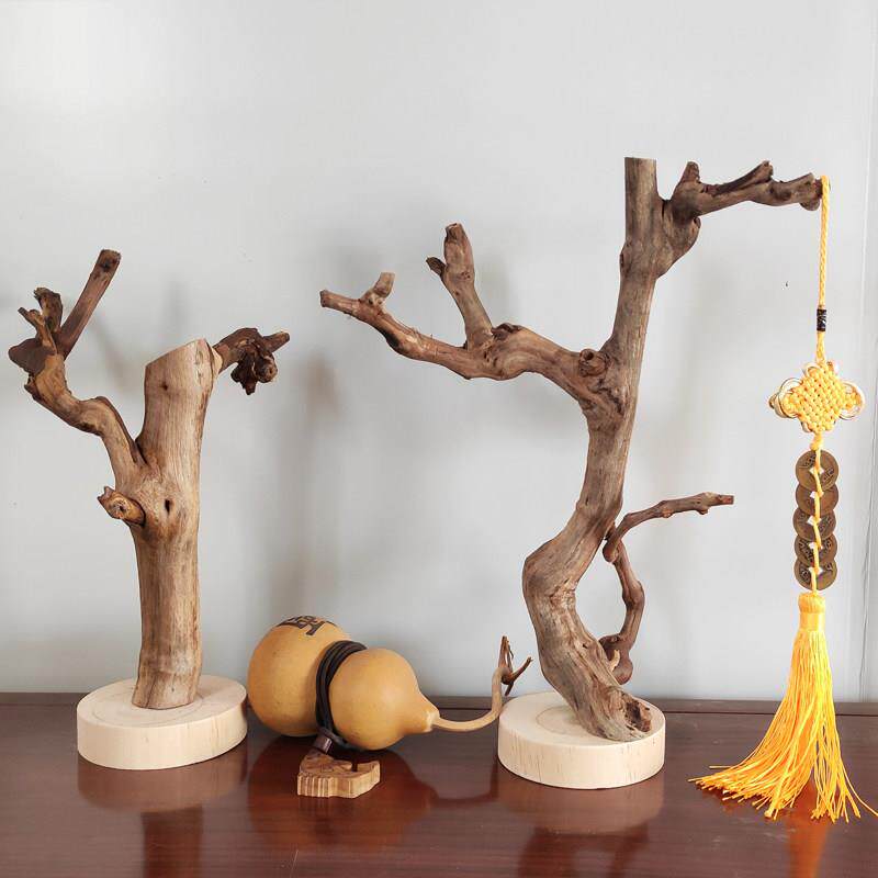 原木树杈带底托 托摆件 书架客厅茶几摆设 手工天然把玩首饰实木