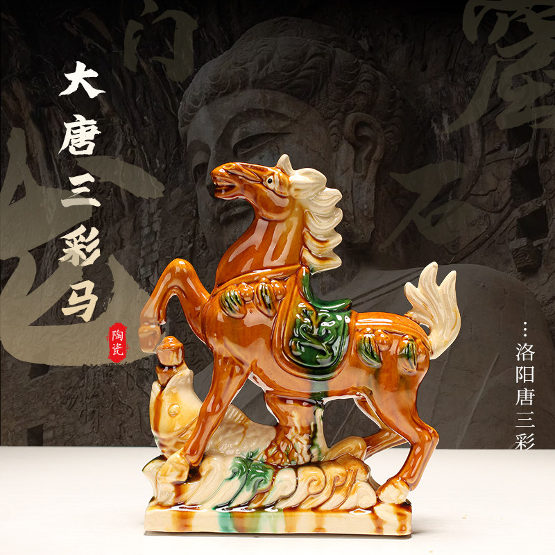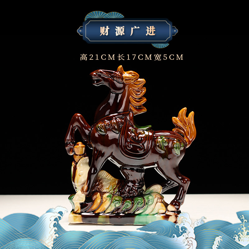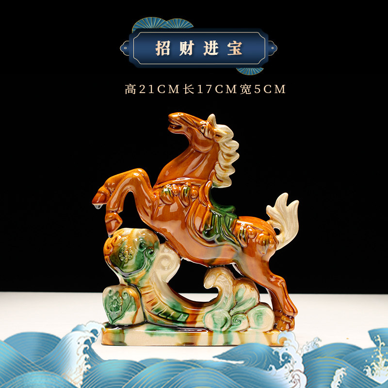 唐三彩马陶瓷工艺品办公室客厅装饰品礼物红色招财马的吉祥物摆件