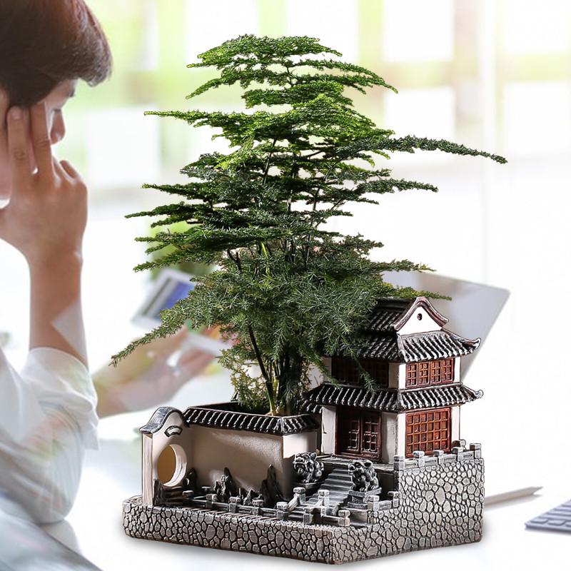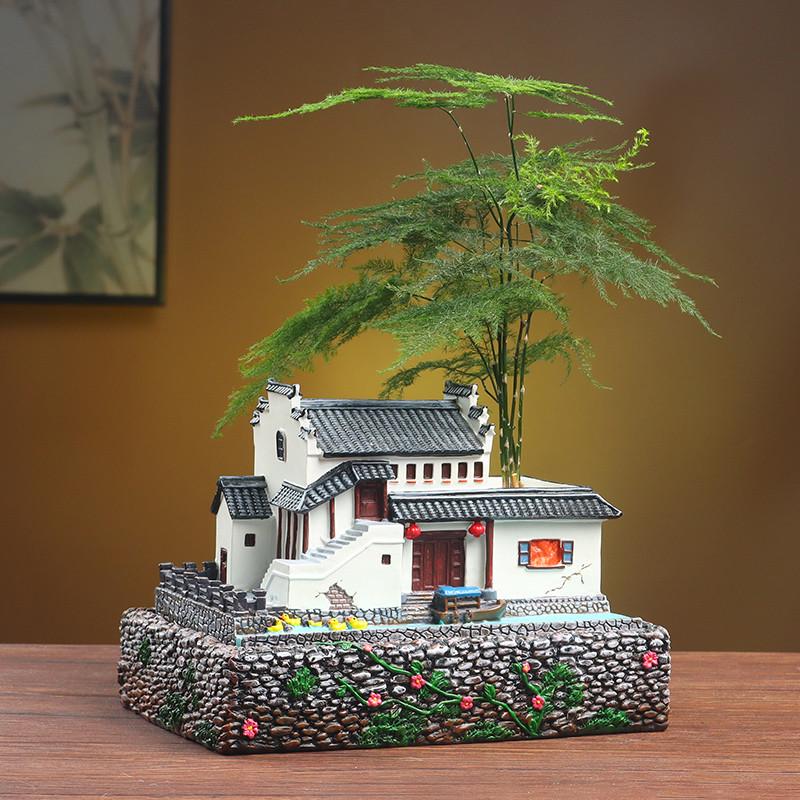 建筑模型摆件树脂微景观造景中式庭院盆景客厅花盆办公室创意房子
