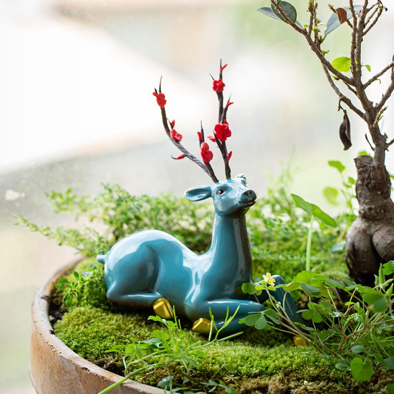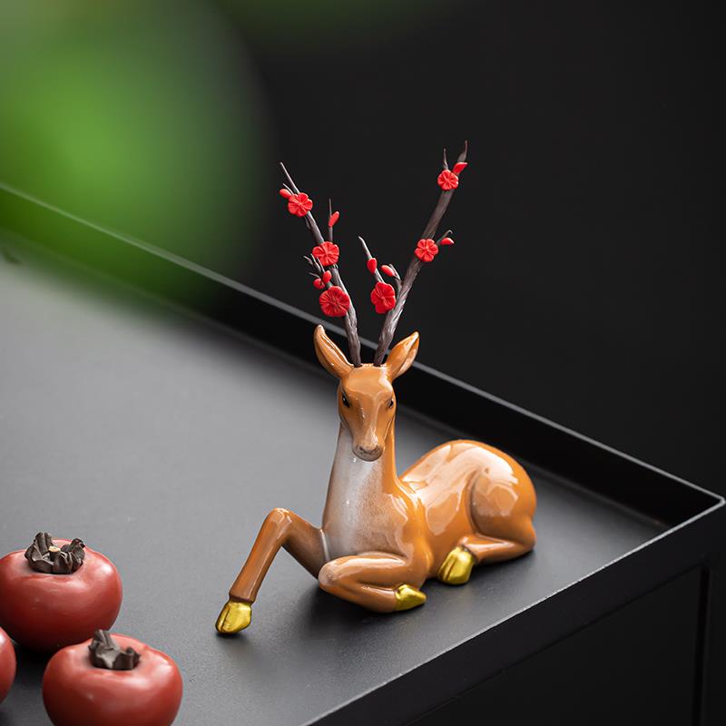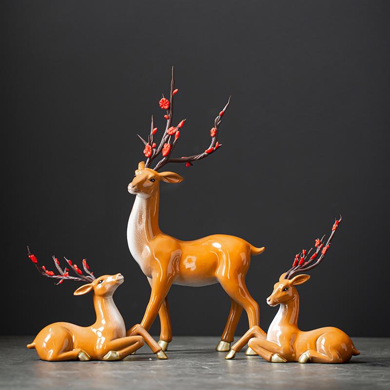 新中式家居客厅玄关陶瓷梅花鹿摆件新房酒柜电视柜桌面装饰工艺品