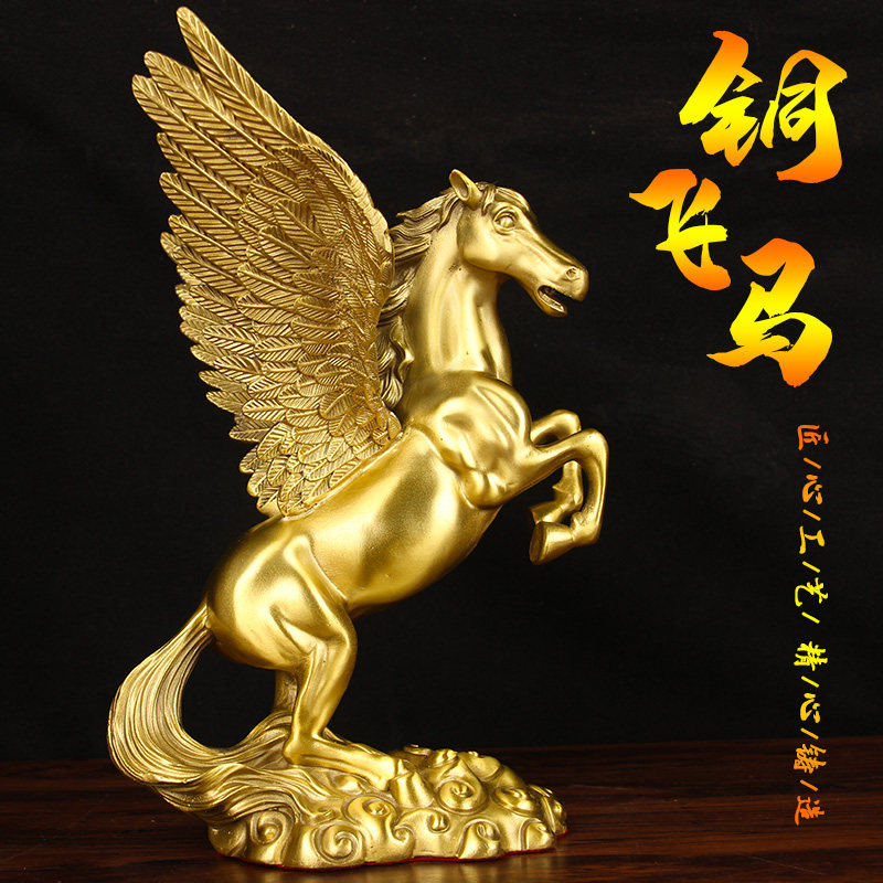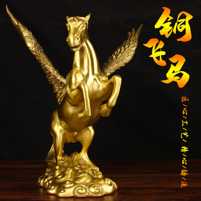 纯黄铜飞马摆件飞天马上发家居客厅办公室店铺开业装饰礼品摆设