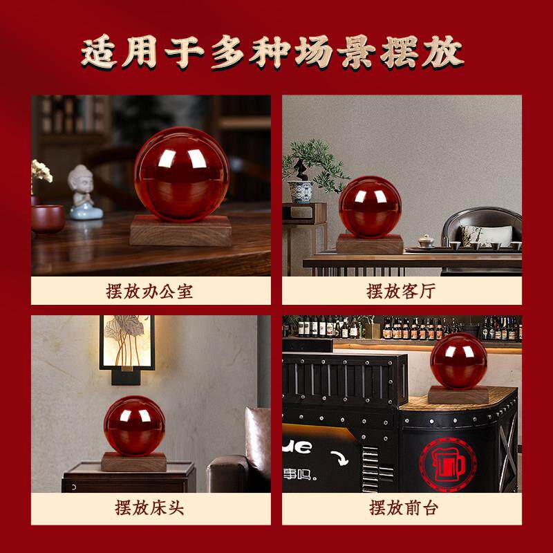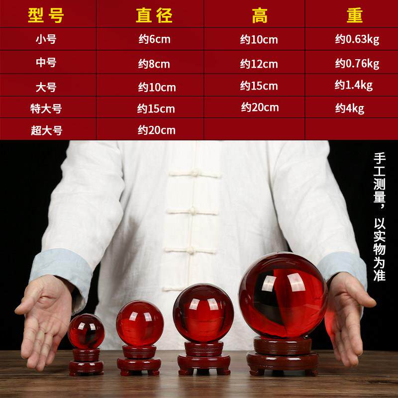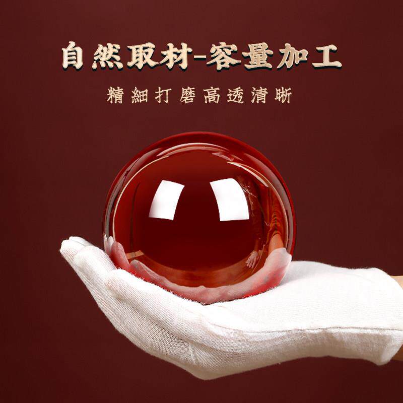 红色水晶球摆件黄色装饰品红色大号玻璃球办公室客厅红运球摆件