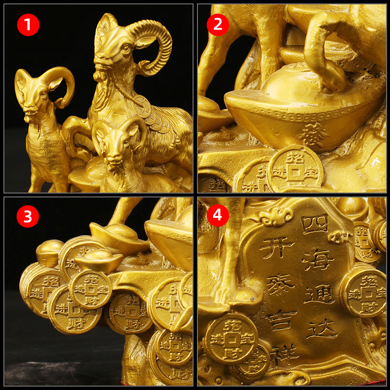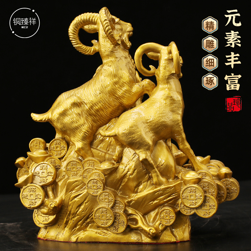 纯黄铜三羊开泰摆件家居客厅办公室装饰领头羊生肖羊铜羊工艺品