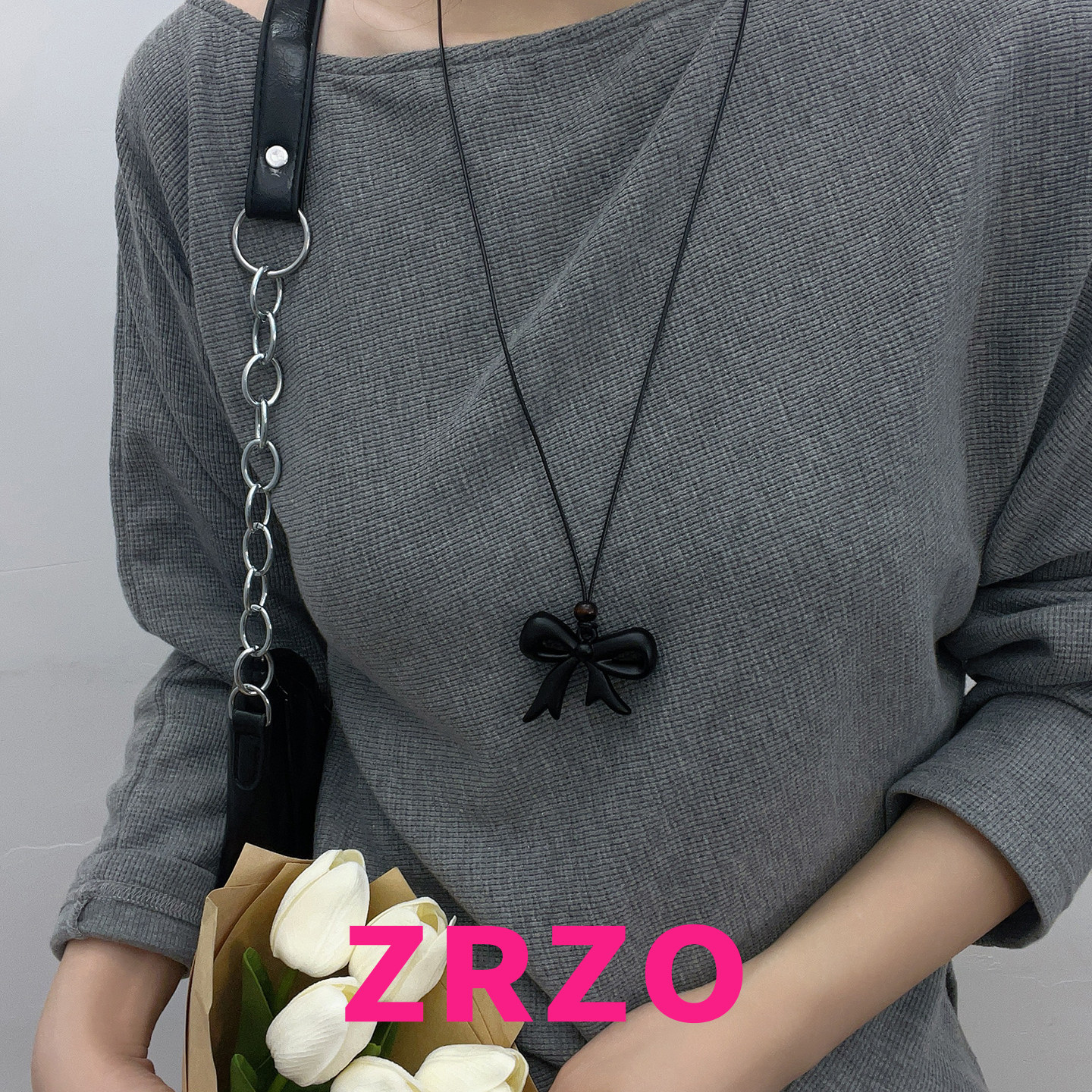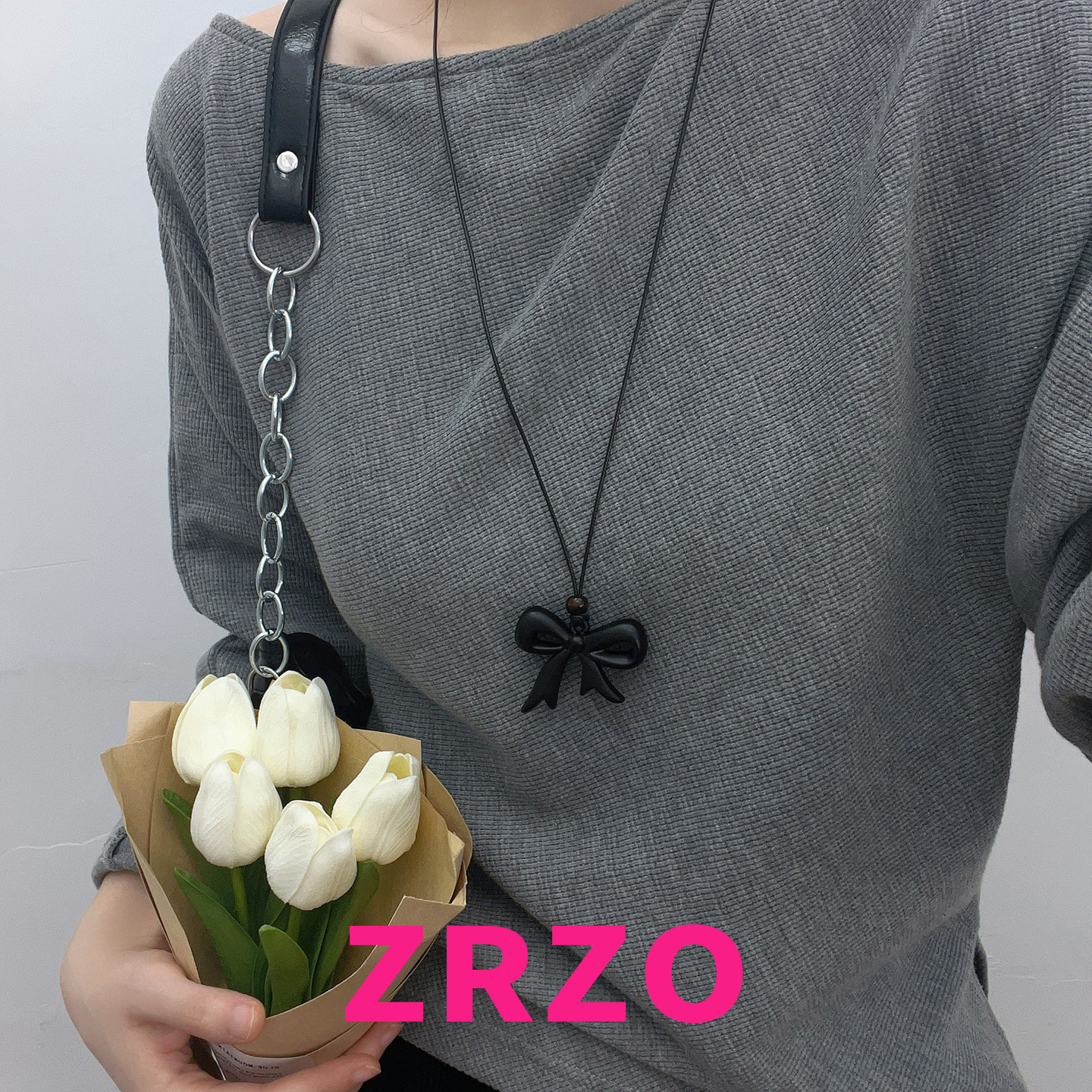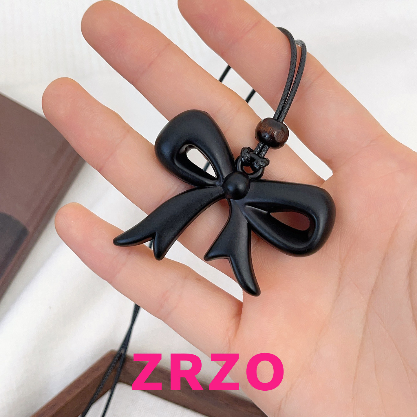 ZRZO复古少女粉黑色蝴蝶结项链长款编绳吊坠时尚高级感毛衣链百搭