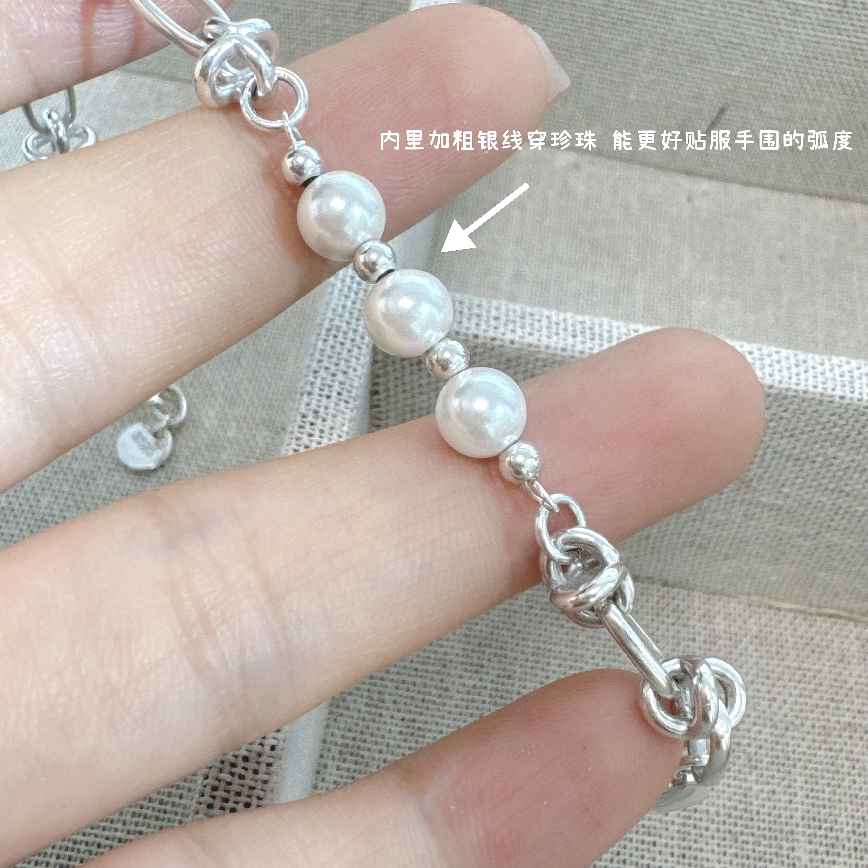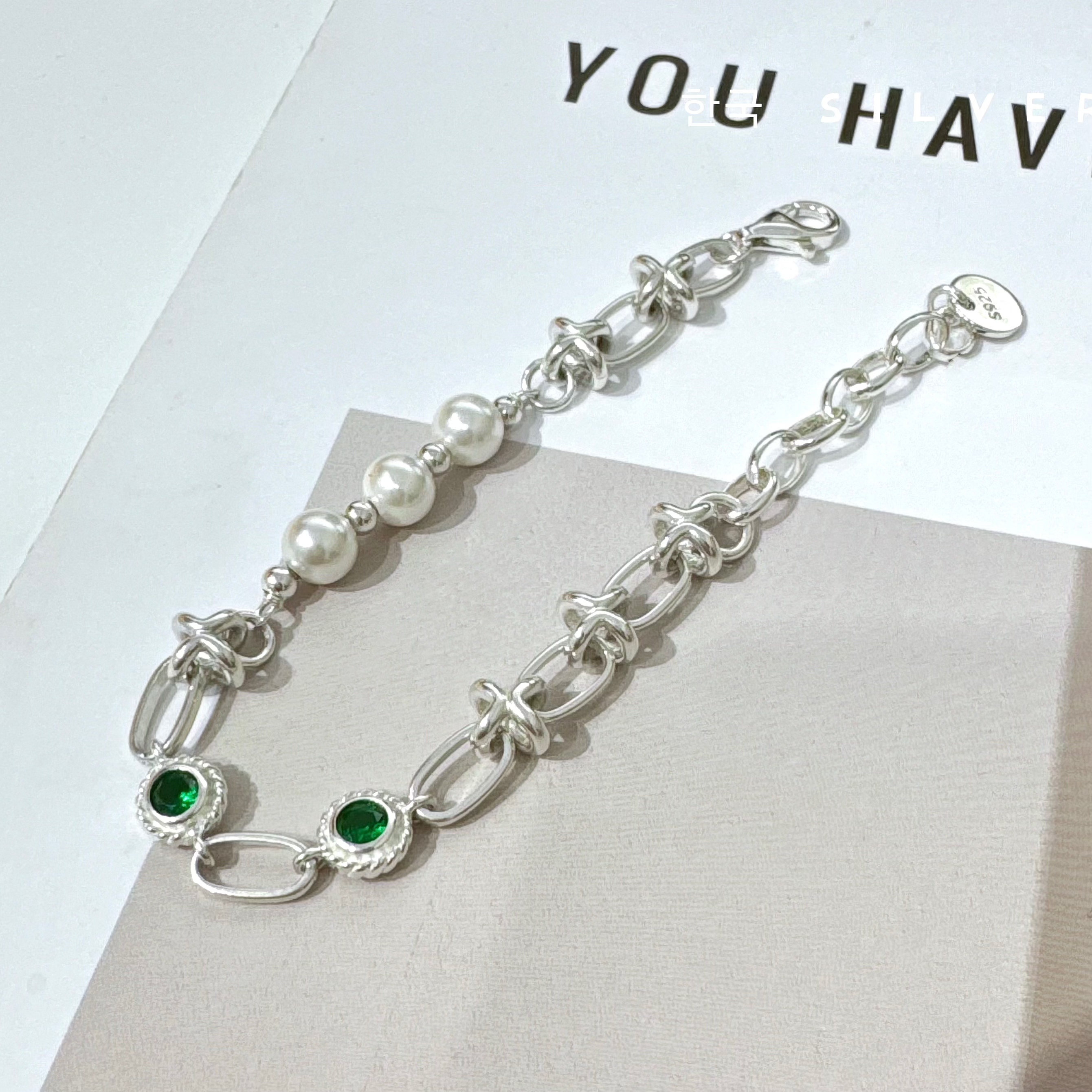 韩代S925纯银绿锆石拼接珍珠手链女轻奢小众设计感个性百搭新款潮