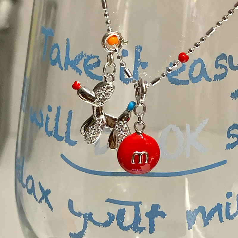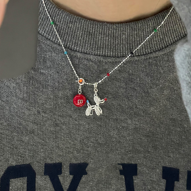敲可爱!小狗红m豆趣味项链搭配卫衣设计百搭锁骨链精致独特饰品