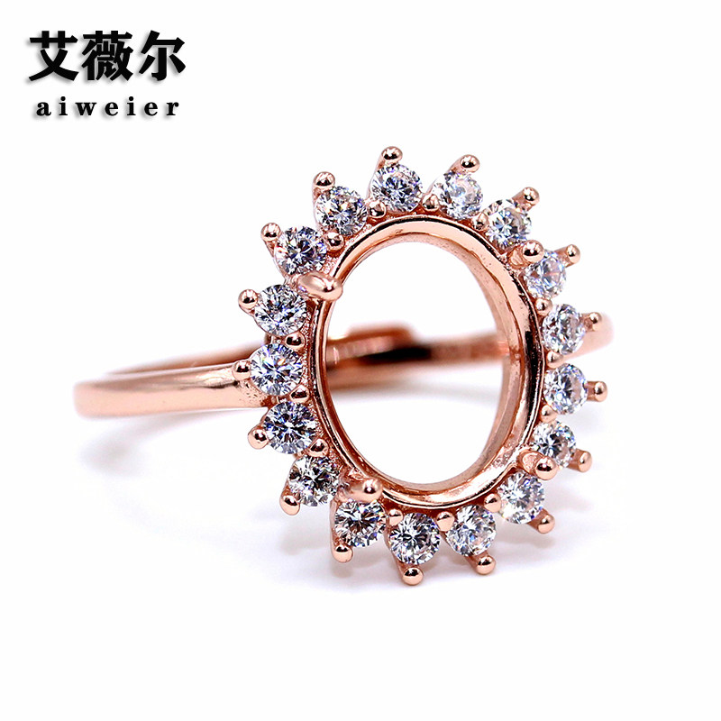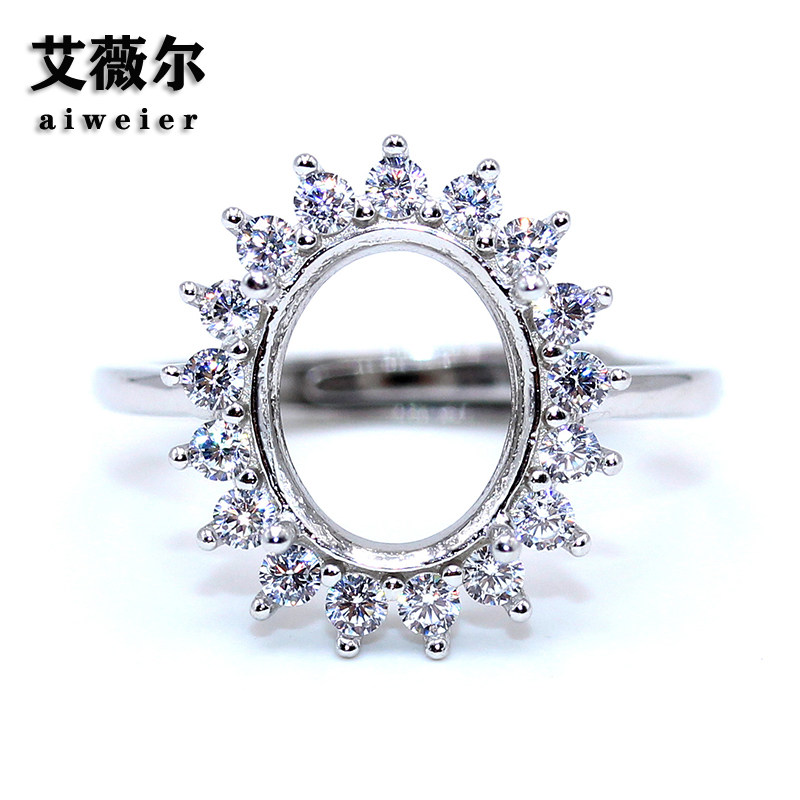 925银戴妃款戒指空托尺寸全围锆代镶嵌18k金戒托活圈3*5-15*20m