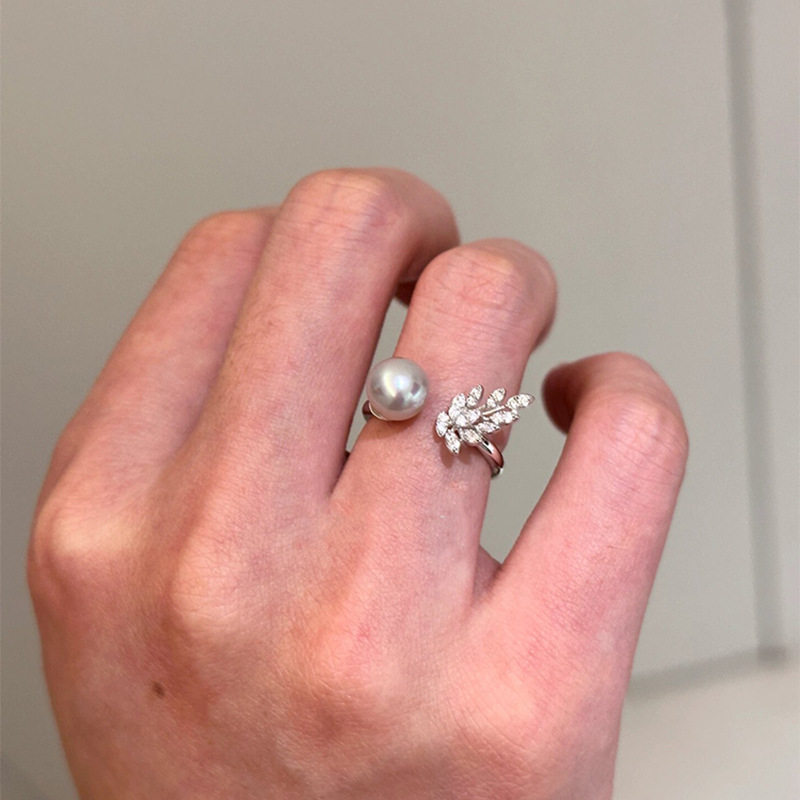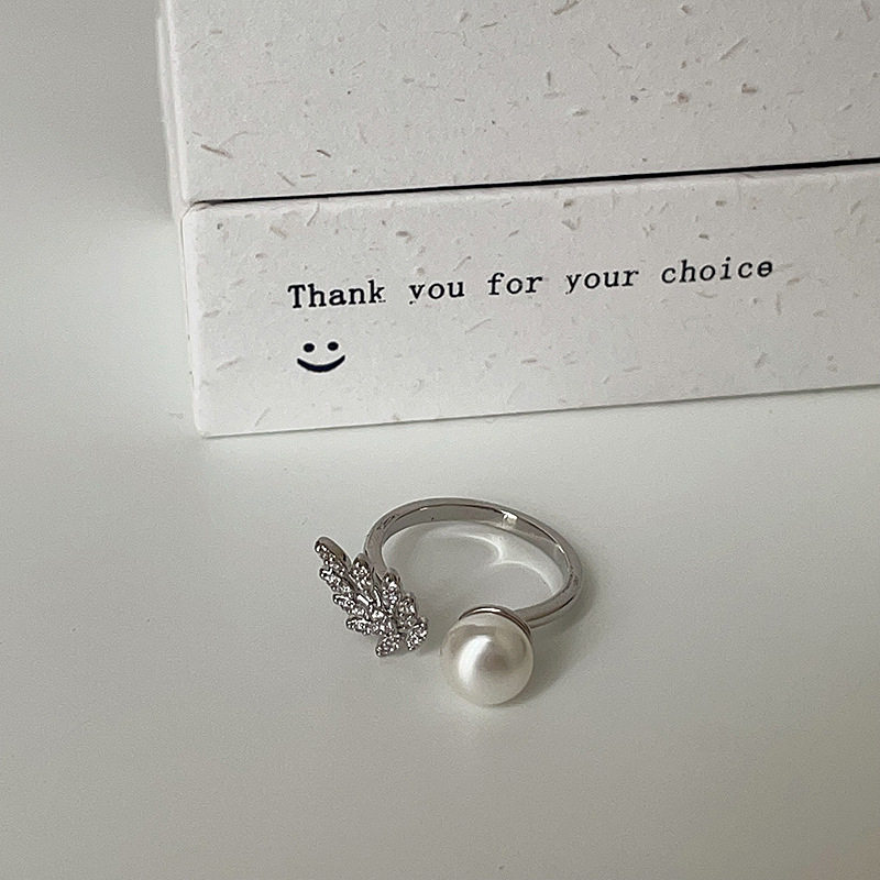 小众设计感锆石雀翎珍珠戒指女轻奢优雅时尚精致个性气质指环戒子