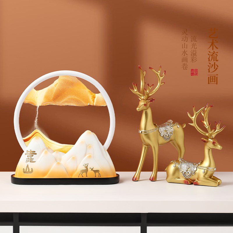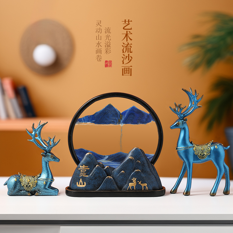 招财鹿流沙画家居客厅酒柜装饰品摆件入门玄关电视柜乔迁新居礼品