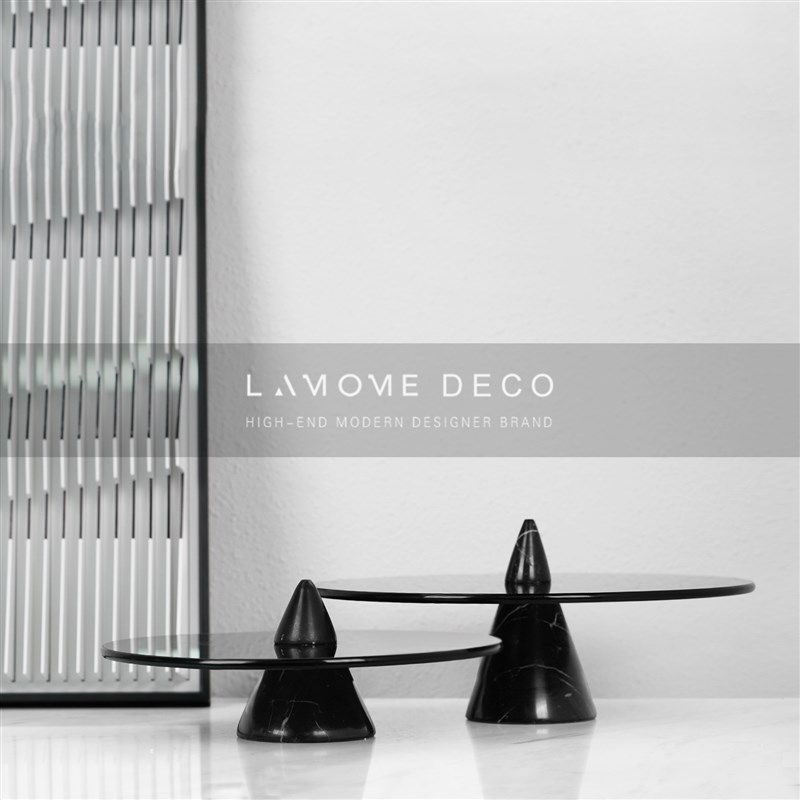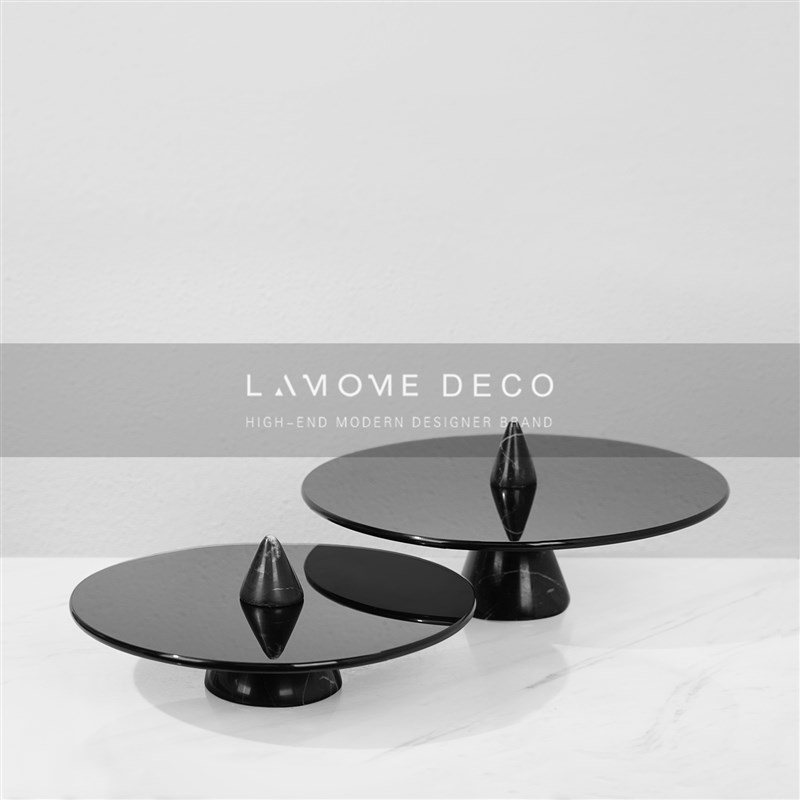 简约现代黑色大理石洞石锥形几何摆件样板间软装S客厅餐厅餐桌托