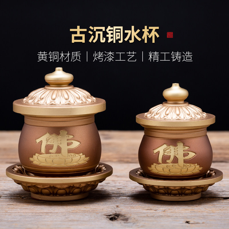 黄铜中式佛前供水杯家用供奉财神贡酒杯敬神杯佛堂观音净水杯供杯