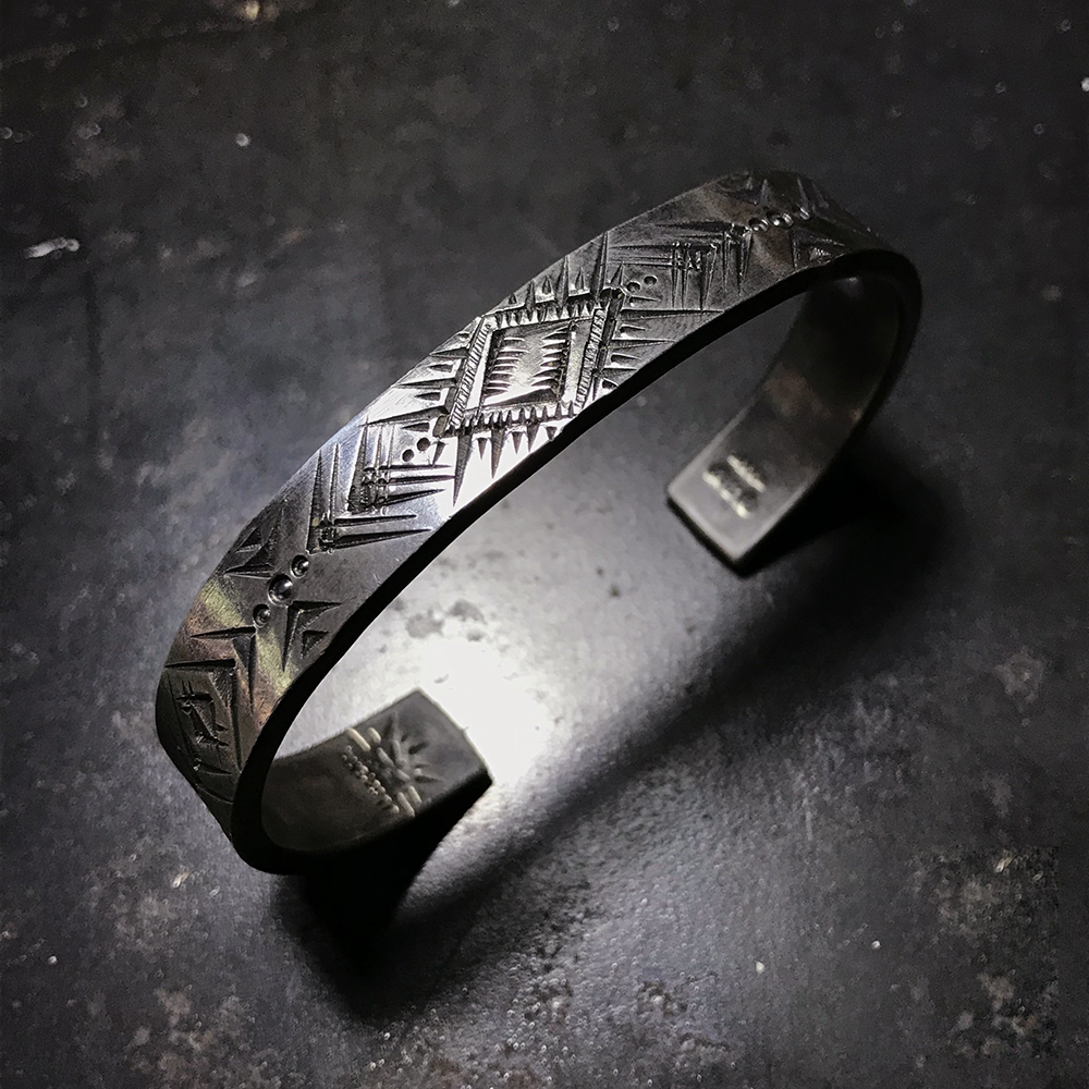 跋折罗VAJRA原创 太阳图腾 纯银手镯手工錾刻复古潮流印第安银饰