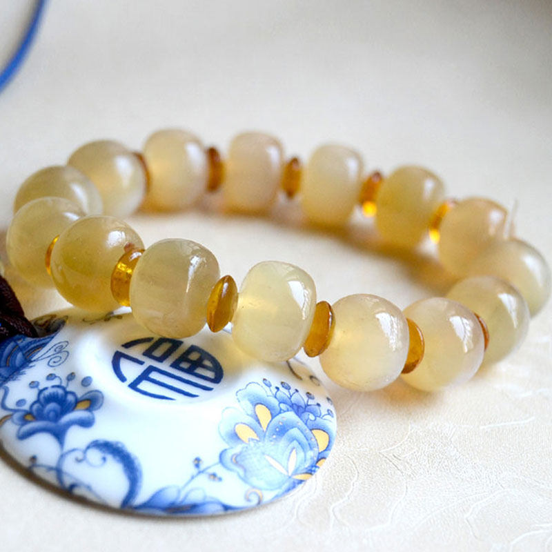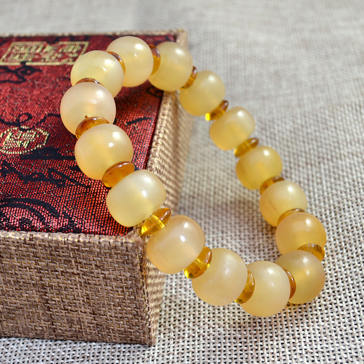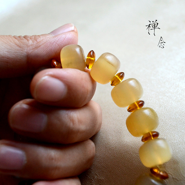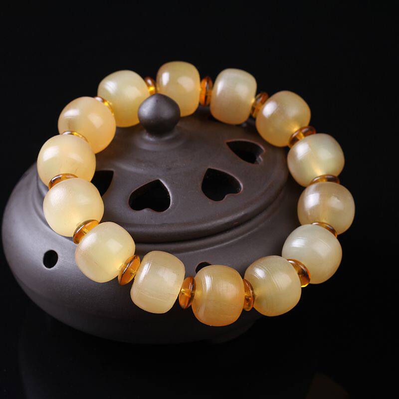天然真品羊角手串苹果桶珠文玩念珠民族风饰品盘玩14-16mm男手持