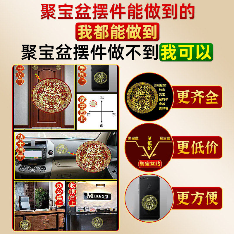 聚宝盆隐形金属贴家用客厅酒柜店铺公司玄关百福缸摇钱树手机贴纸