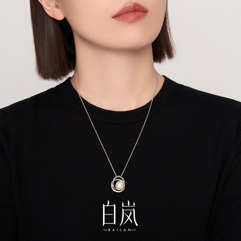 白岚绕圈珍珠项链女925银轻奢小众设计感气质精致锁骨链XL4018