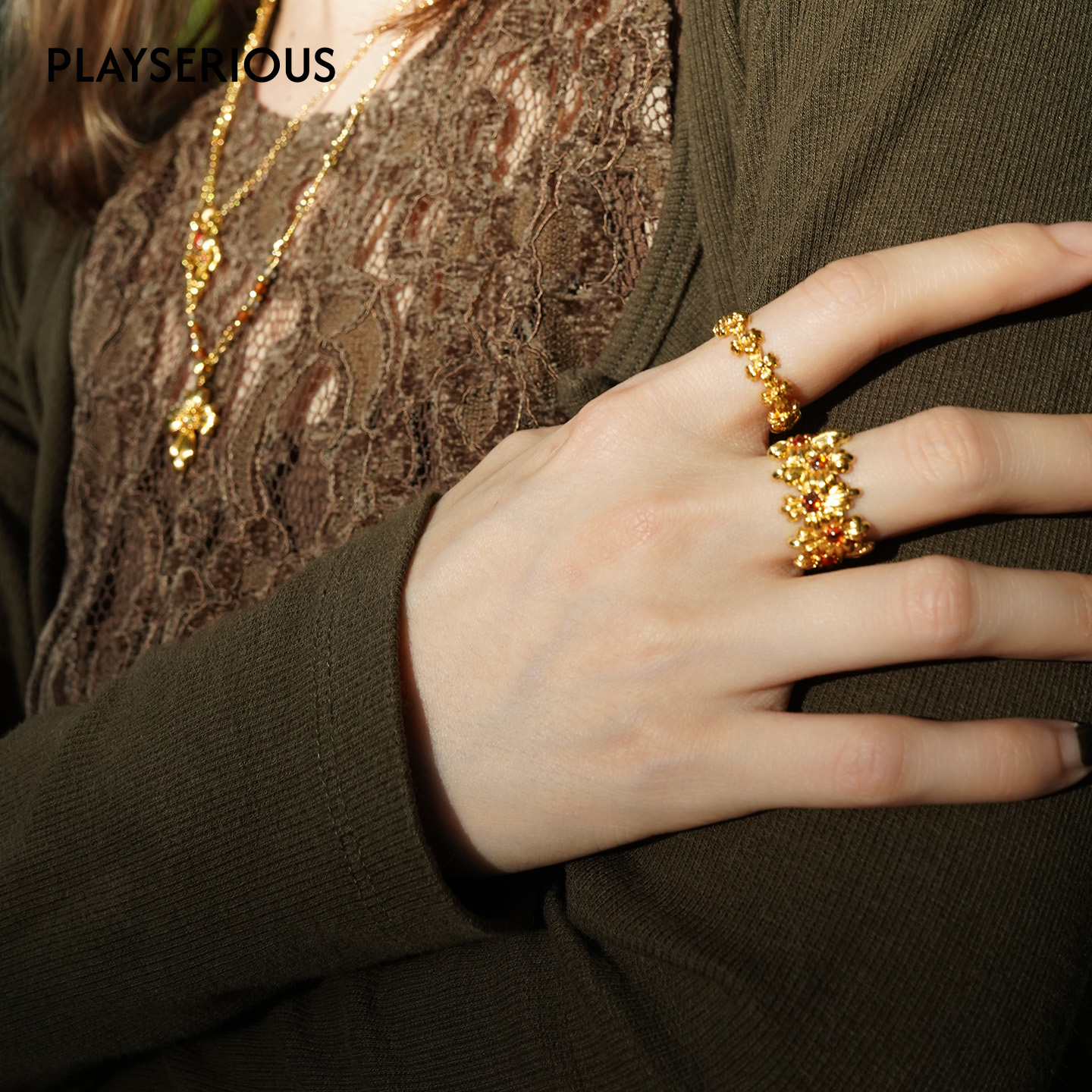 TONE TALE洞天 2026春季新款弗朗花宽戒精致花朵指环个性宽版戒指