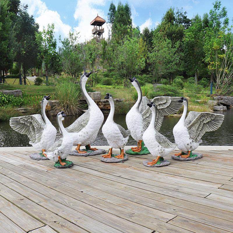 花园餐厅庭院水池仿真鸭子雕塑幼儿园农庄天鹅大白鹅模型景观摆件