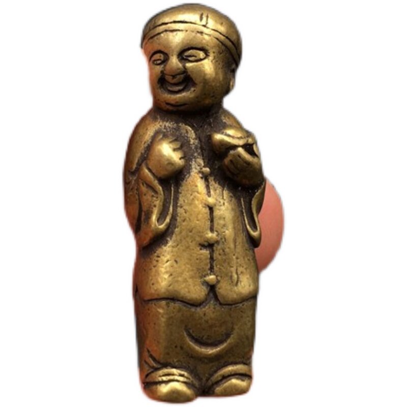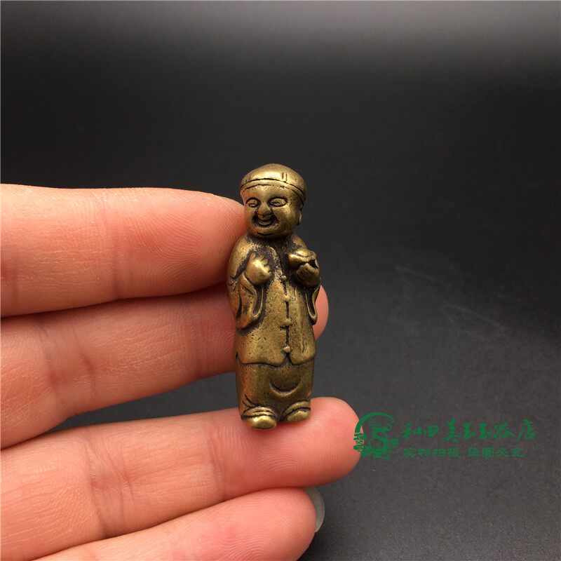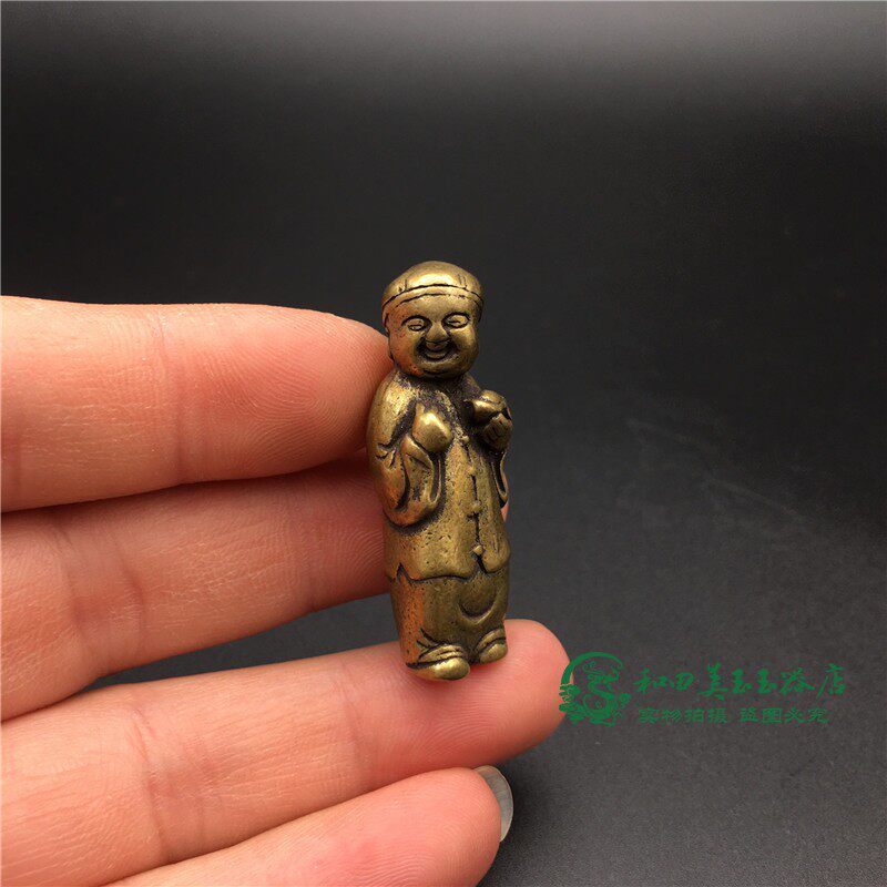 复古黄铜小地主小把件财神吊坠铜雕财主人物手把件铜挂件古玩铜器