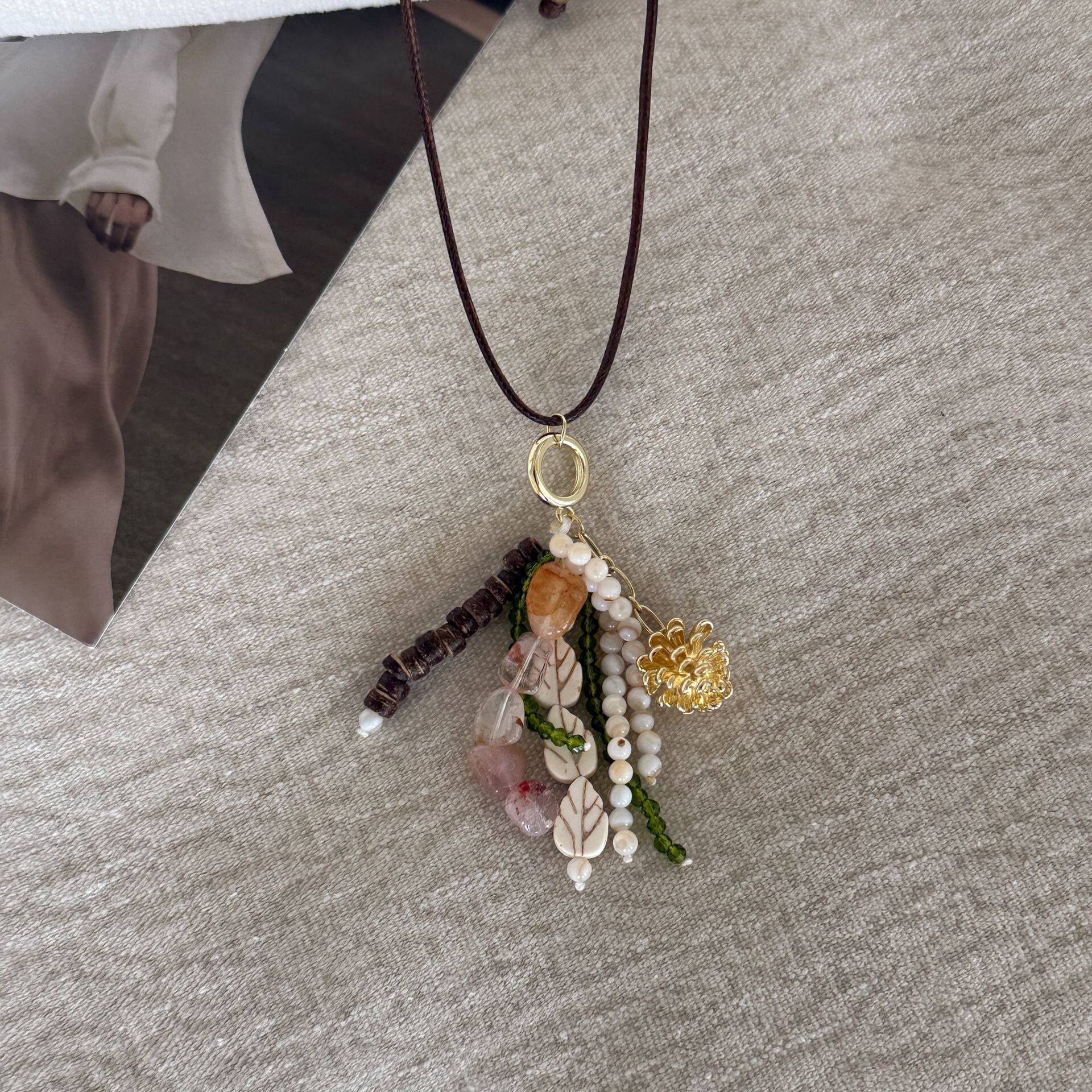 椰风葡萄长项链女多元素多材质叠搭佩戴高级感流苏吊坠度假海边链