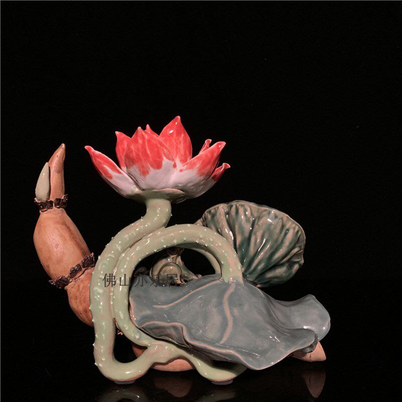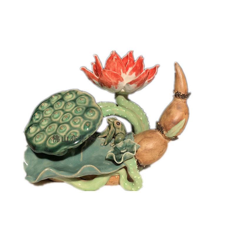 石湾公仔荷叶莲花陶瓷摆件客厅博古架电视柜摆设乔迁开业新居礼品