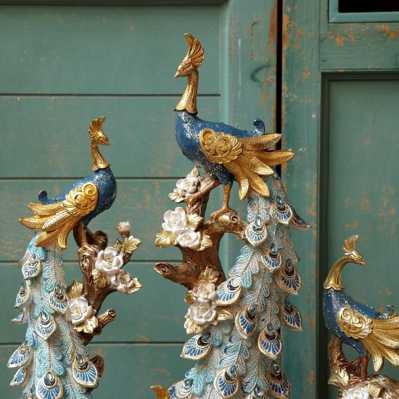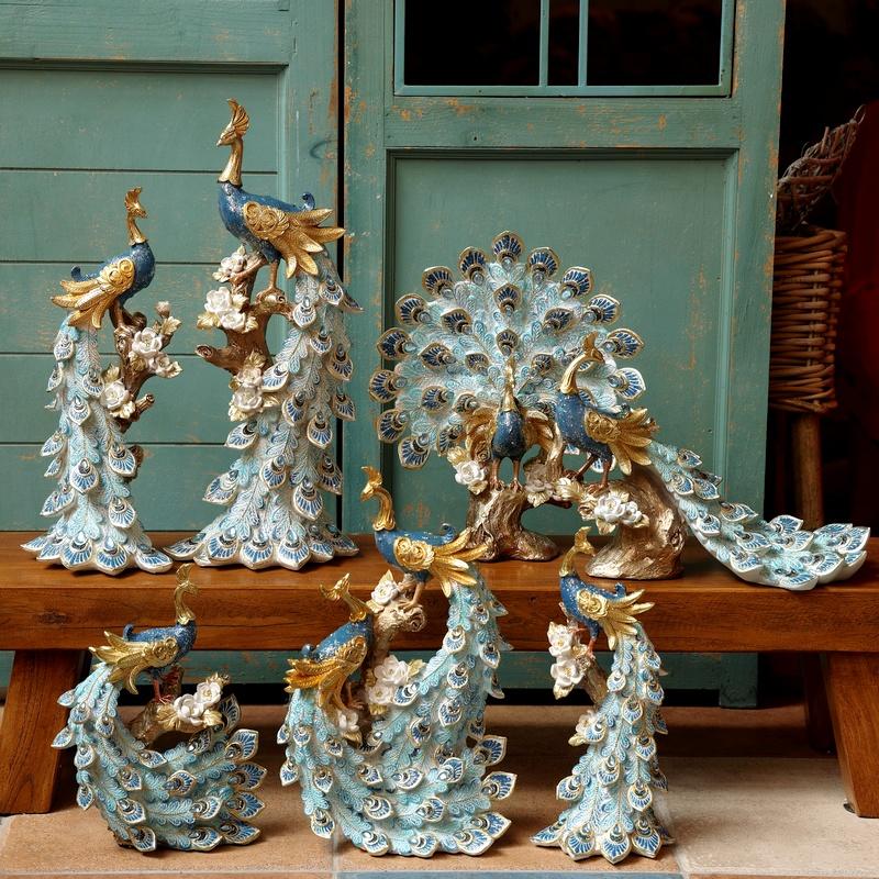 欧式创意工艺孔雀酒柜装饰品玄关电视柜现代东南亚风格家居摆件