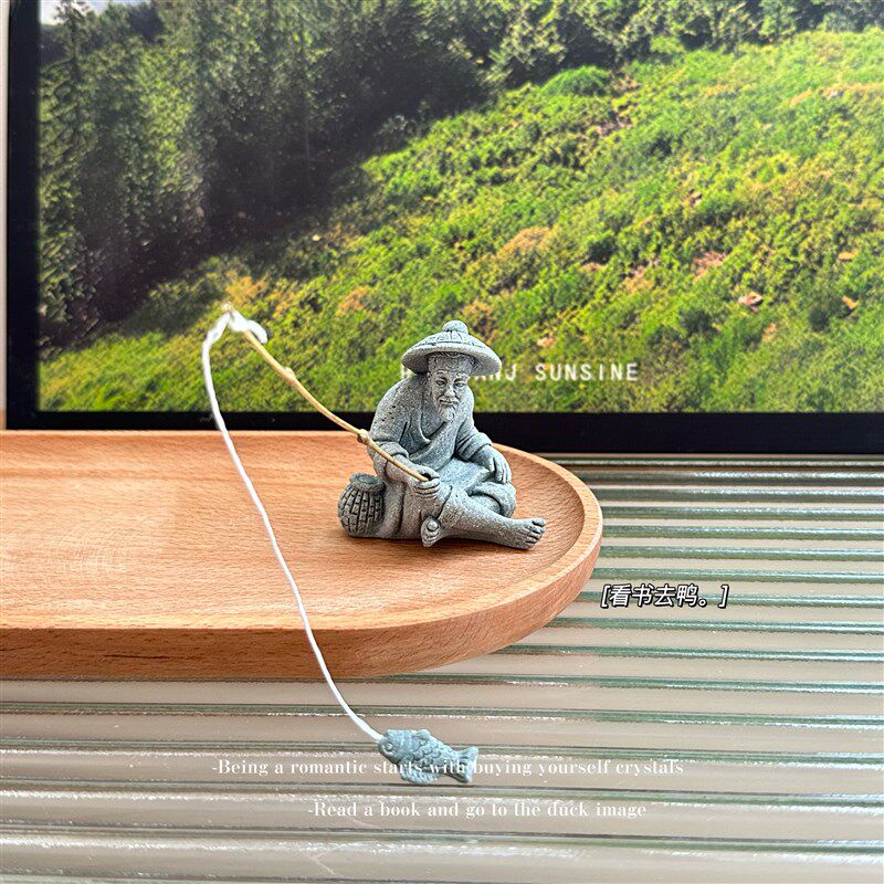 无聊了 看看渔翁钓鱼小老头 钓鱼 微Q观造景装饰摆件礼物