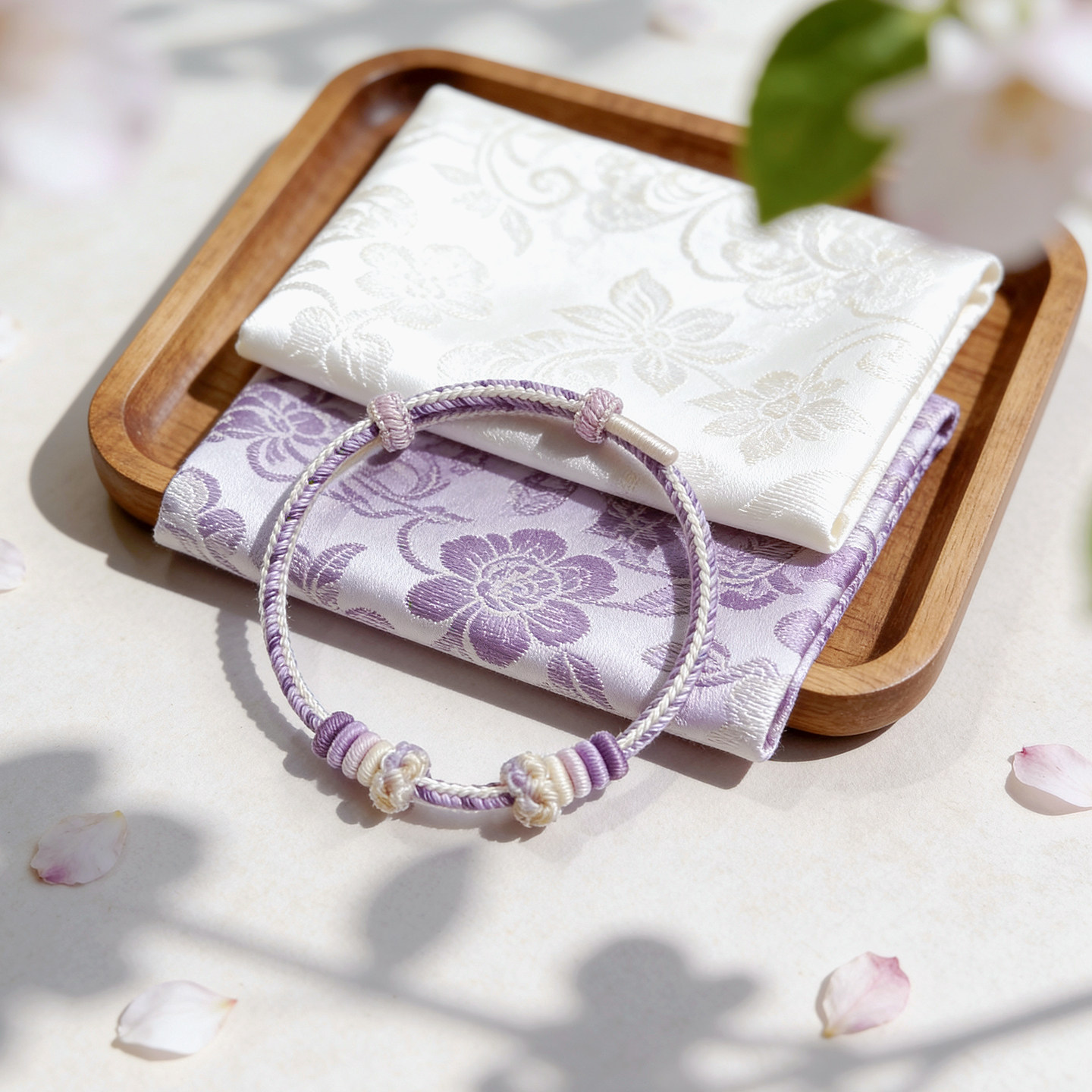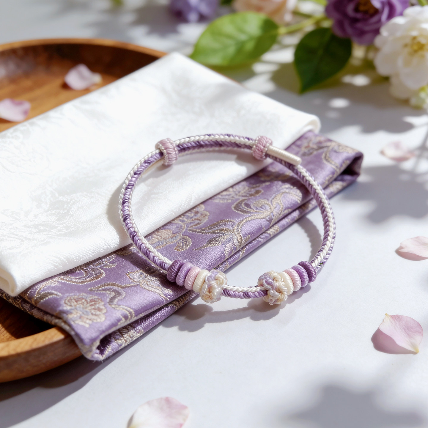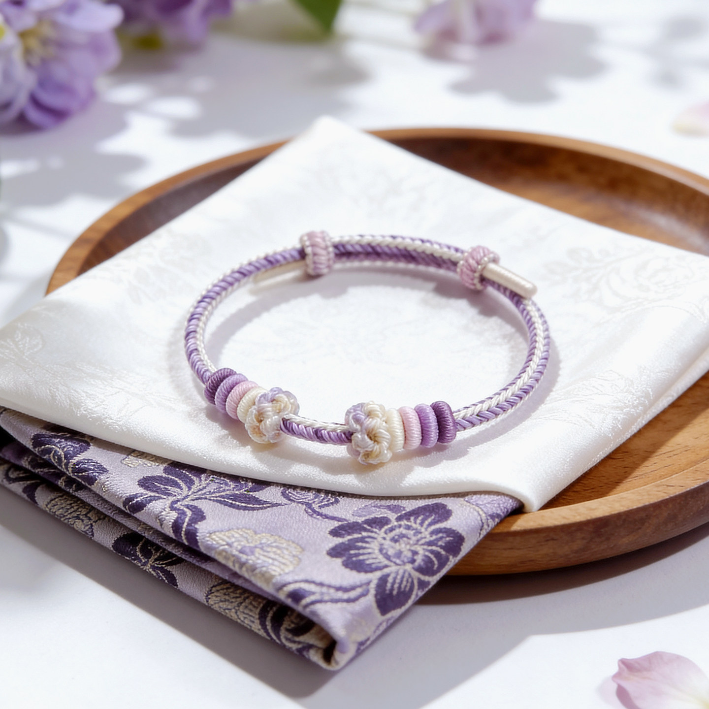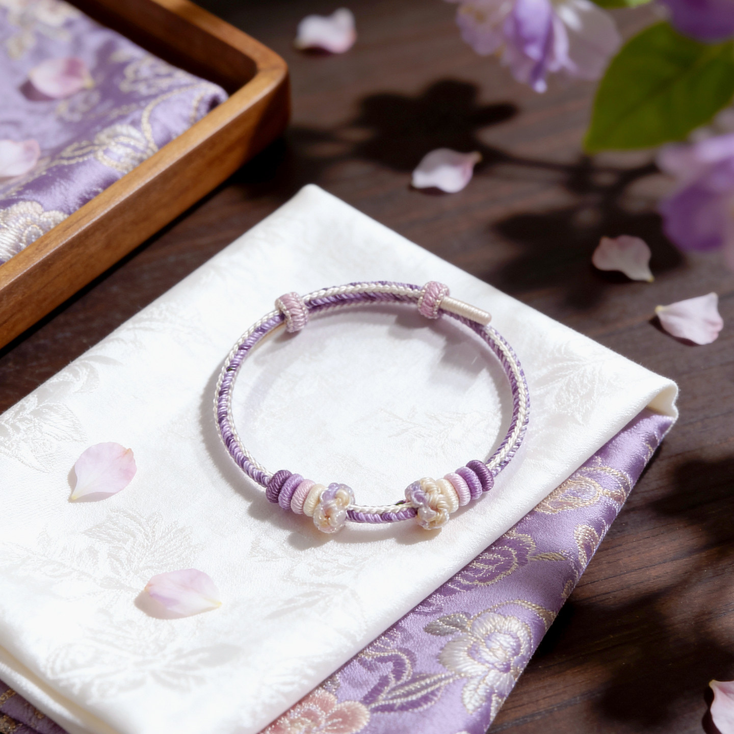 温柔风手工编织绳紫色简约手绳可穿珠串黄金转运珠可调节编绳手链