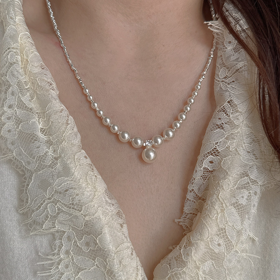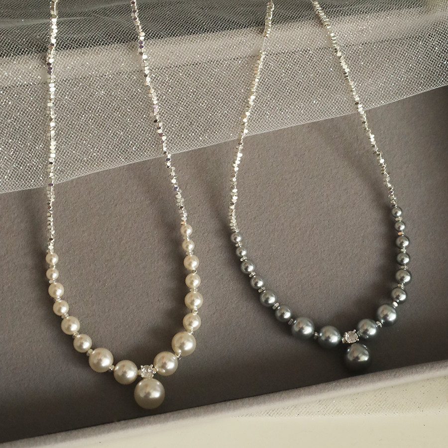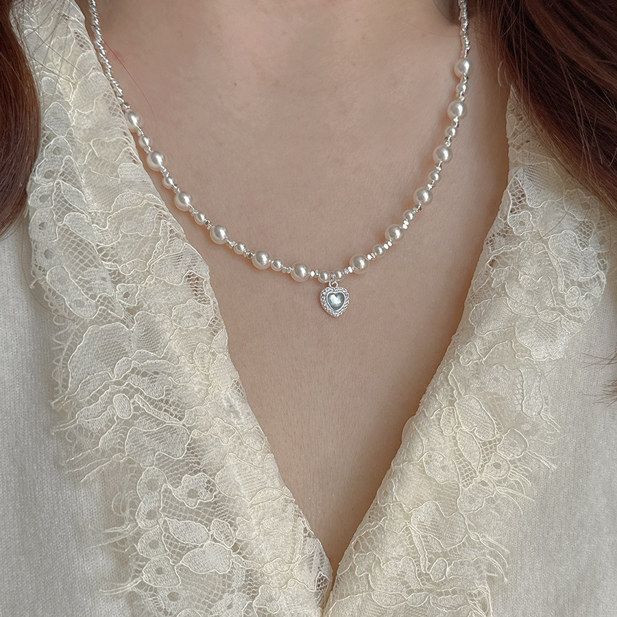 爱心坠珍珠碎银海蓝水滴白色珍珠项链小众设计锁骨链颈链女礼物