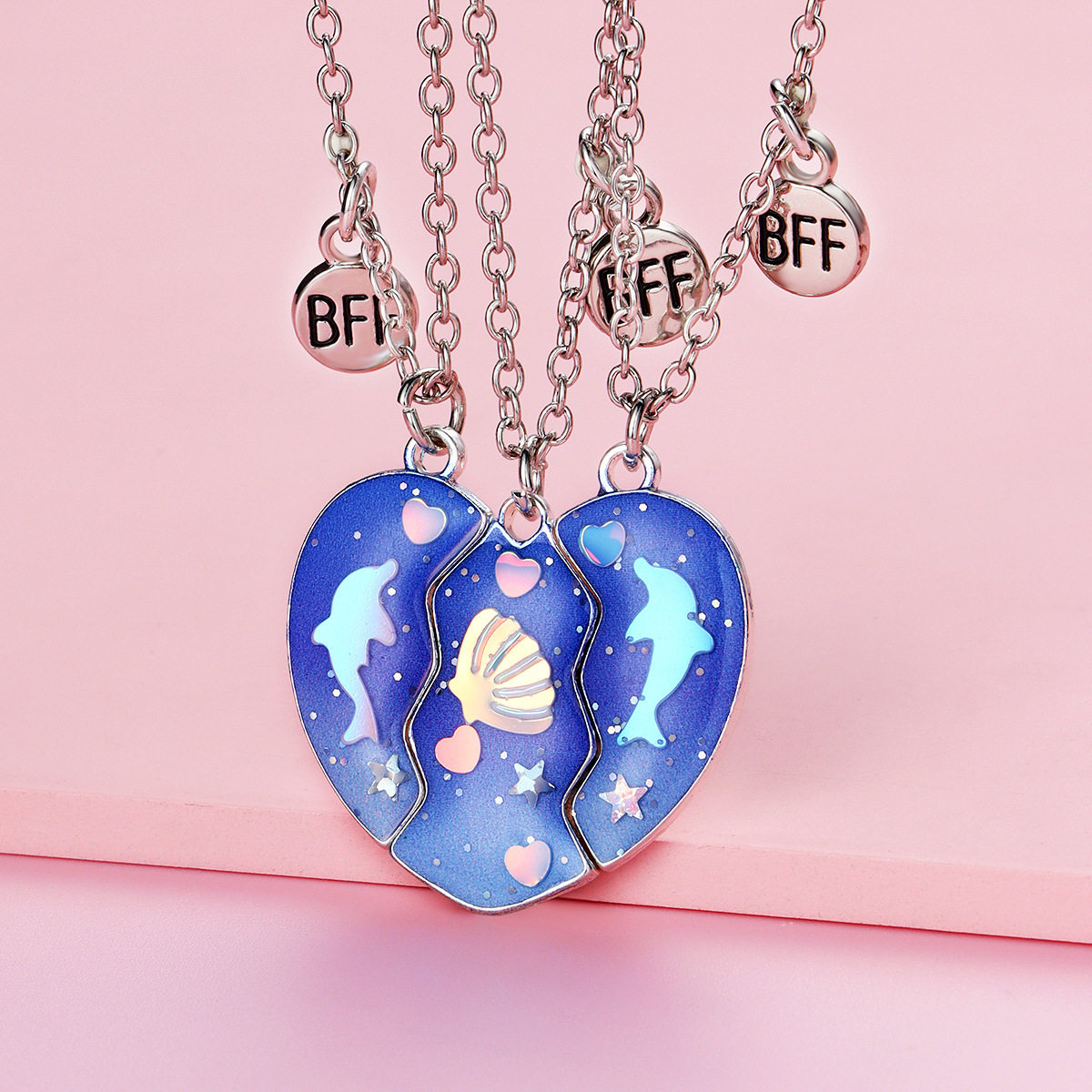 蓝色海豚可爱女生三人闺蜜项链磁吸2026新款爆款儿童女童精致吊坠