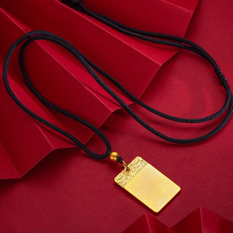 古法祥云平安无事牌男女黑色编织绳子越南沙金仿真黄金毛衣链配饰