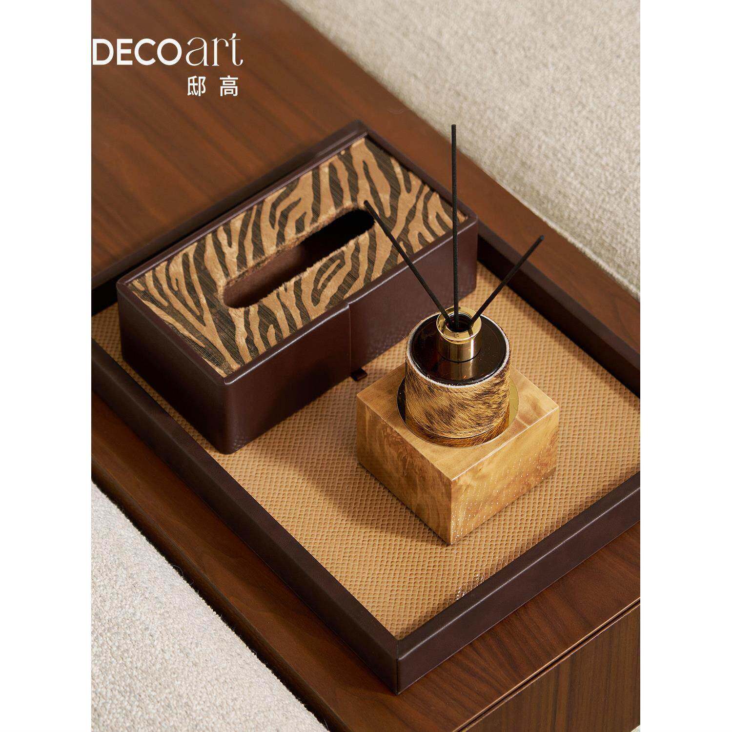 茶几木质长方形托盘金黄色纸巾盒意式极简摆件高级感软装搭配设计