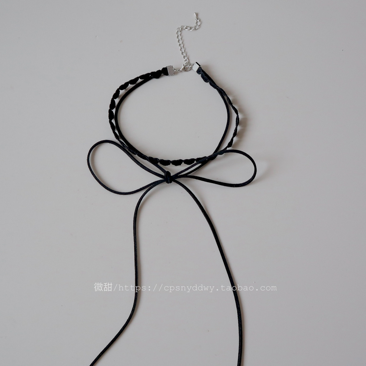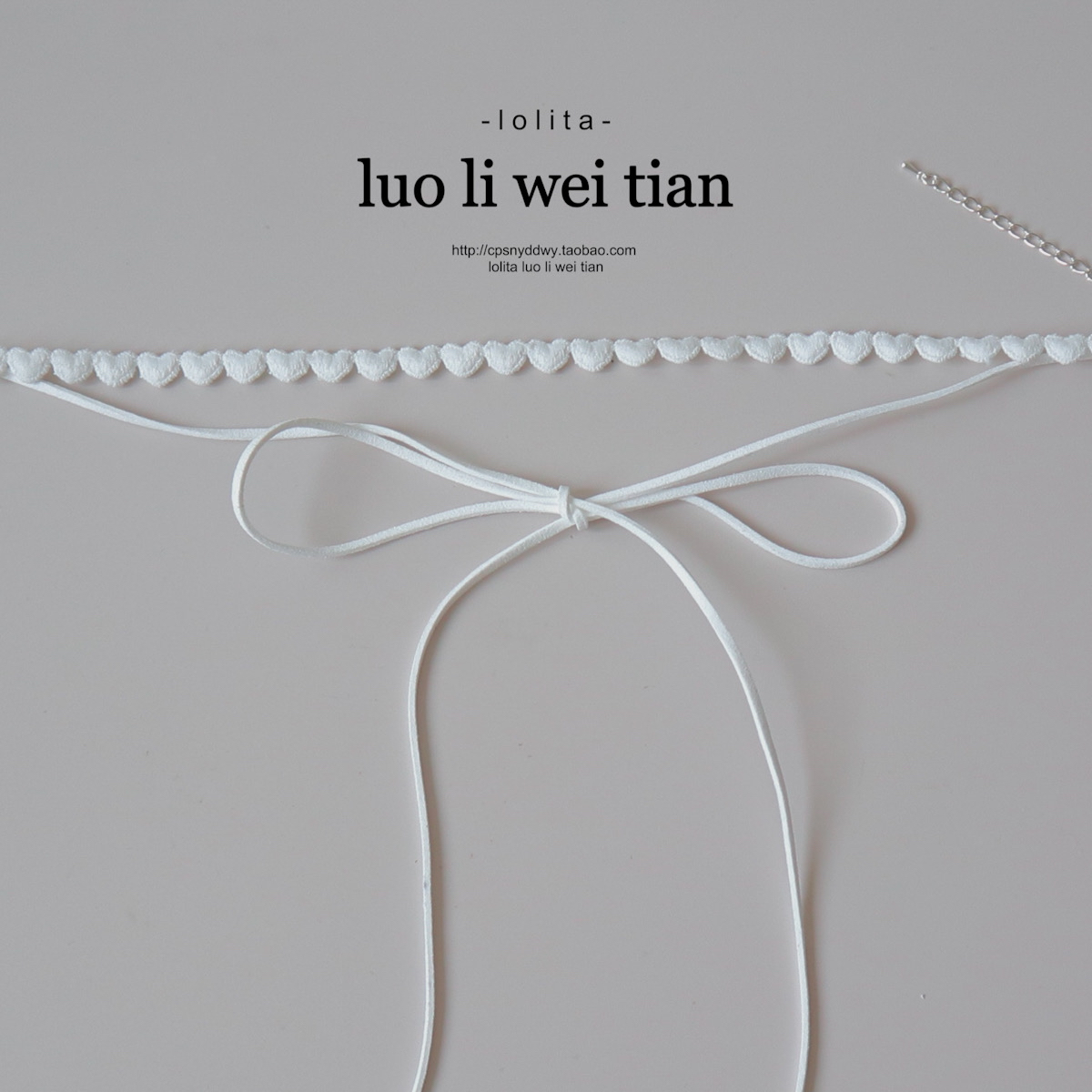 白色爱心双层系带蝴蝶结颈带choker锁骨链女新款脖环项圈配饰女