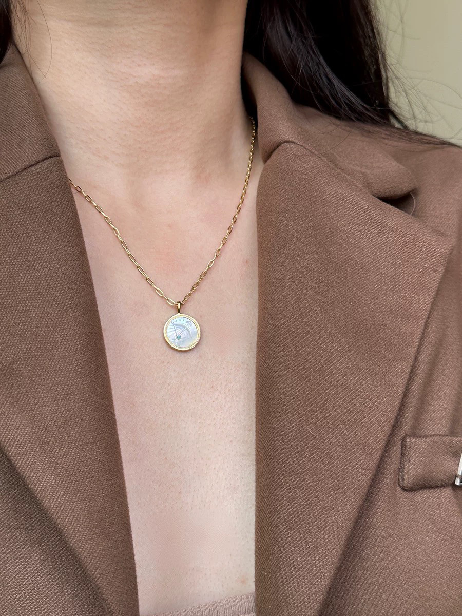 新款 印记浮雕星座圆牌十二星座项链轻奢设计感气质法式项链女