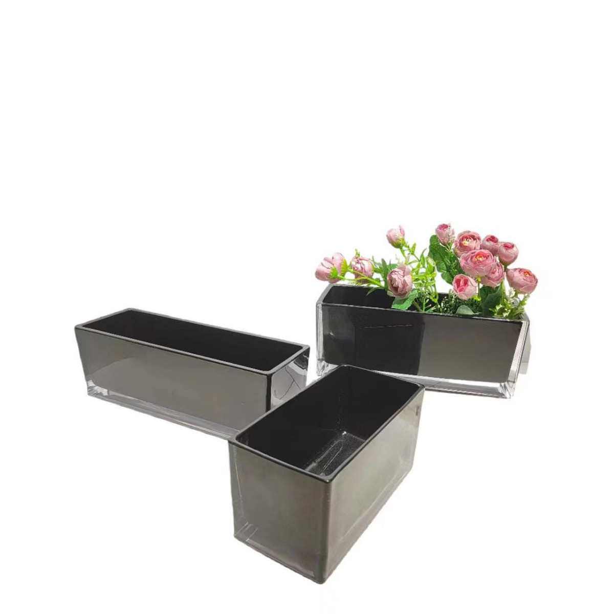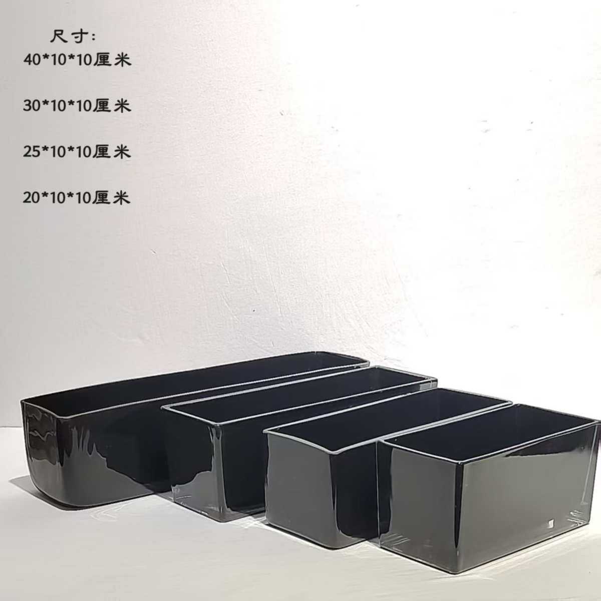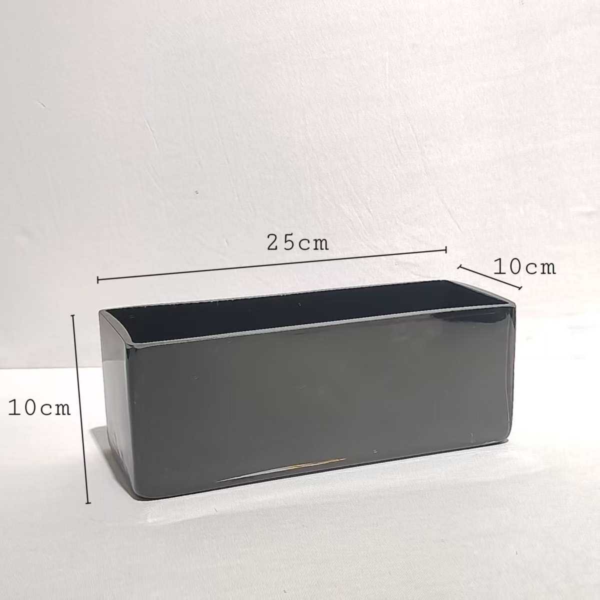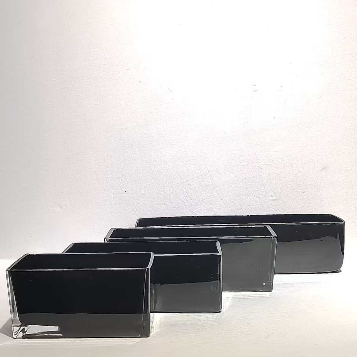 现代简约喷黑色长条方缸桌面插花装饰摆件家居样板房台面软装设计