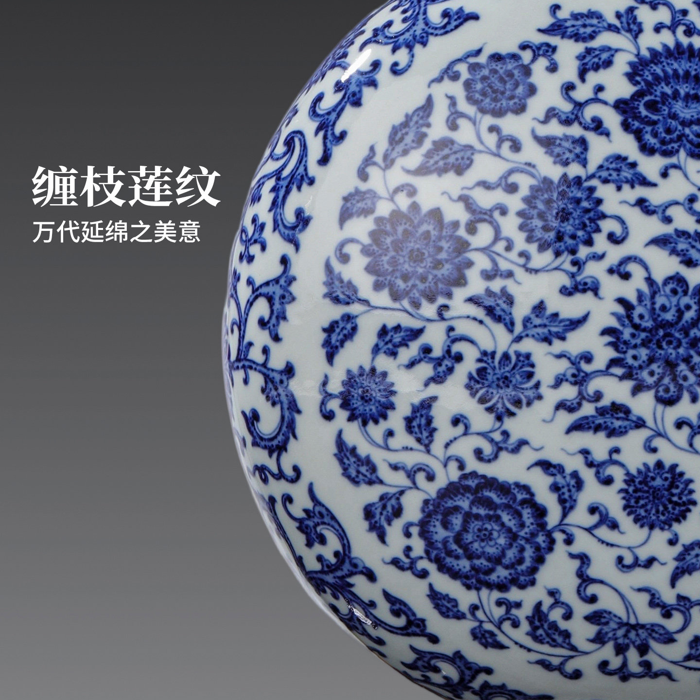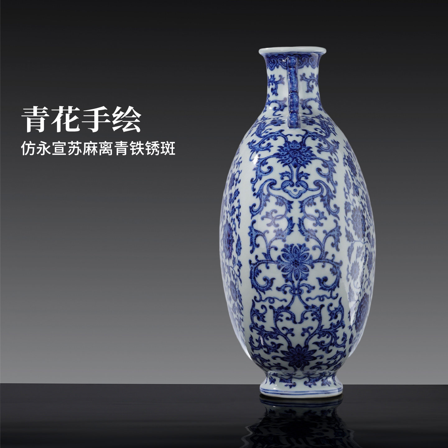 景德镇官方陶瓷手工青花瓷中式缠枝花卉纹仿古抱月瓶摆件高端送礼