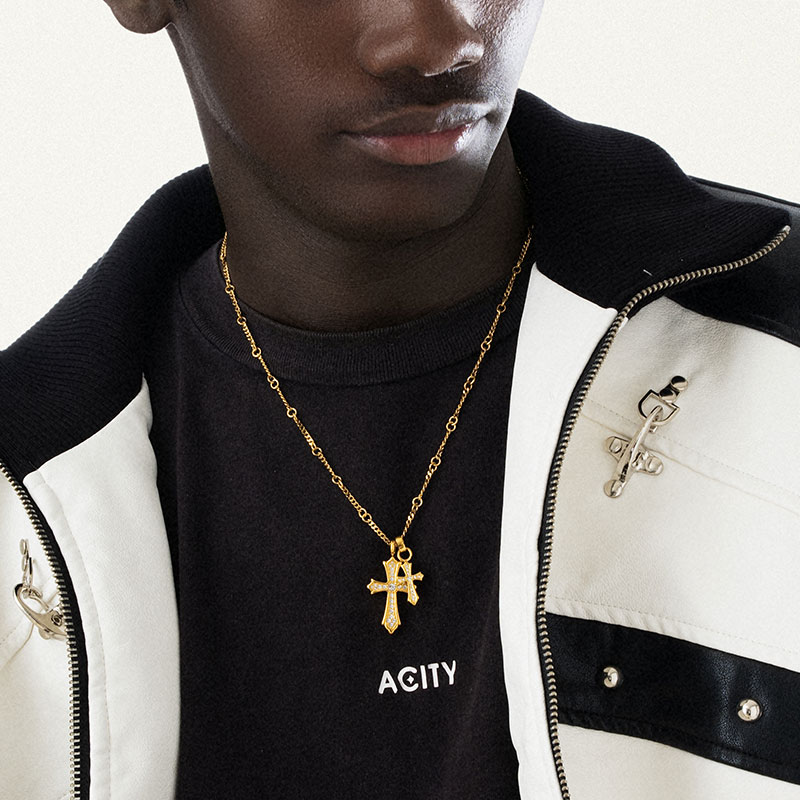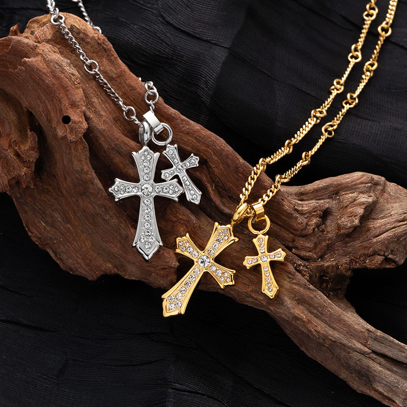ACITY喜城镶钻双十字架项链男女轻奢高级吊坠毛衣链不掉色锁骨链