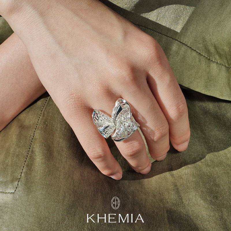 KHEMIA 纯银Silken花丝戒指 原创设计师高级质感度假银饰 默叙