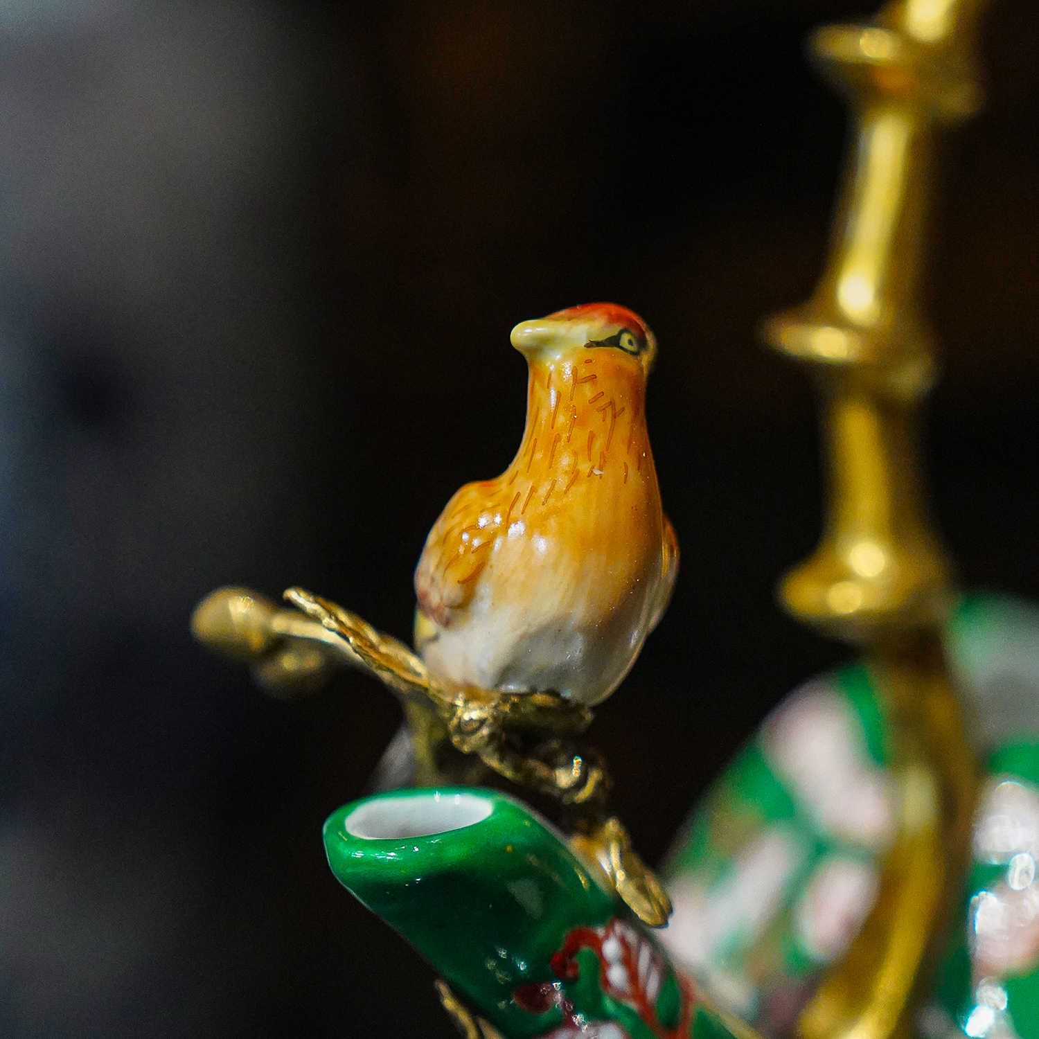 【本尼家】HX92中式高温陶瓷镶铜手绘南瓜茶壶小鸟提壶桌面摆件