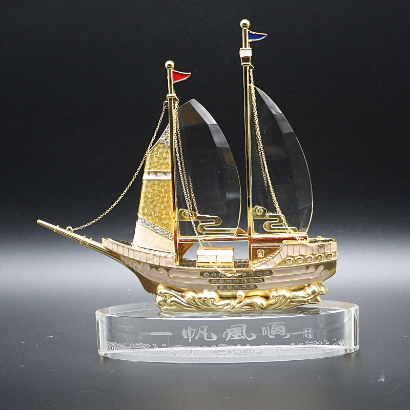 高档办公室水晶工艺品开业商务礼品定制会议活动一帆风顺帆船摆件