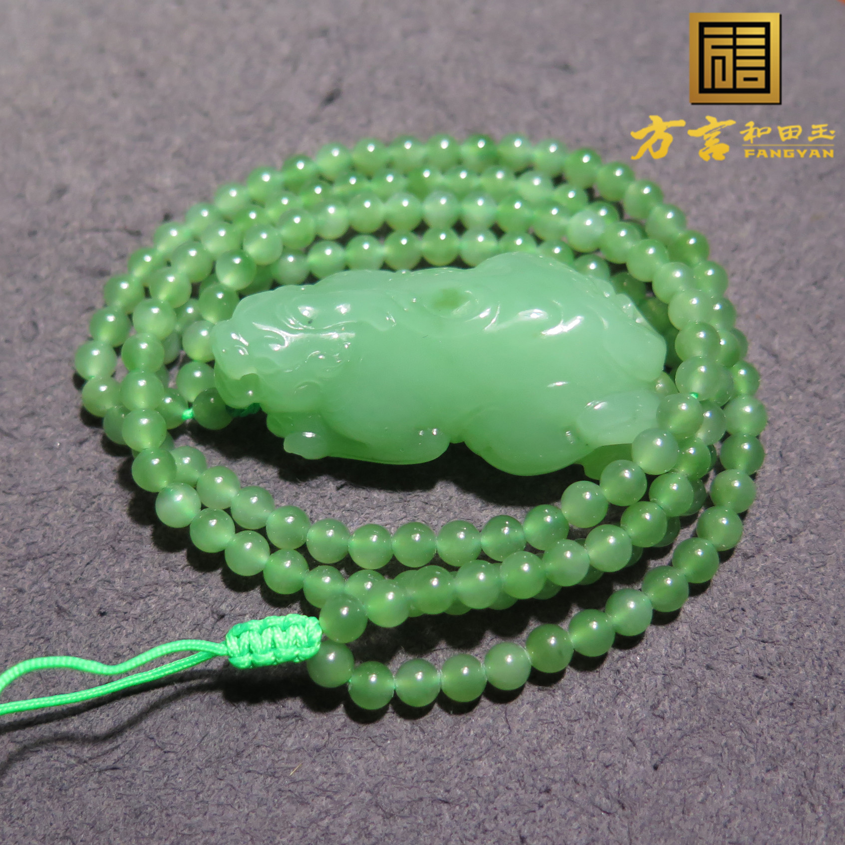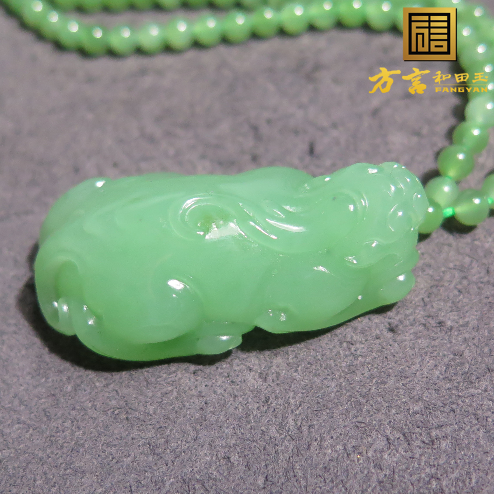 震撼方言和田玉精品珍藏俄料碧玉色标级果绿色貔貅吊坠项链套装X5