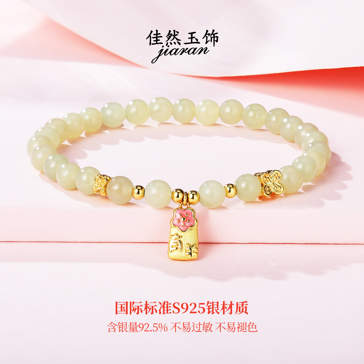 佳然玉饰有钱花和田玉手串女款纯银手链高级感送女友闺蜜生日礼物