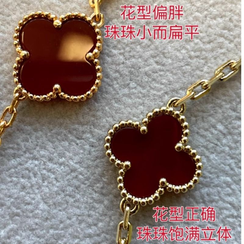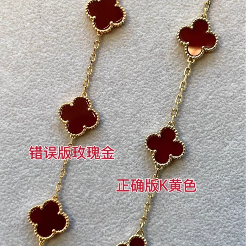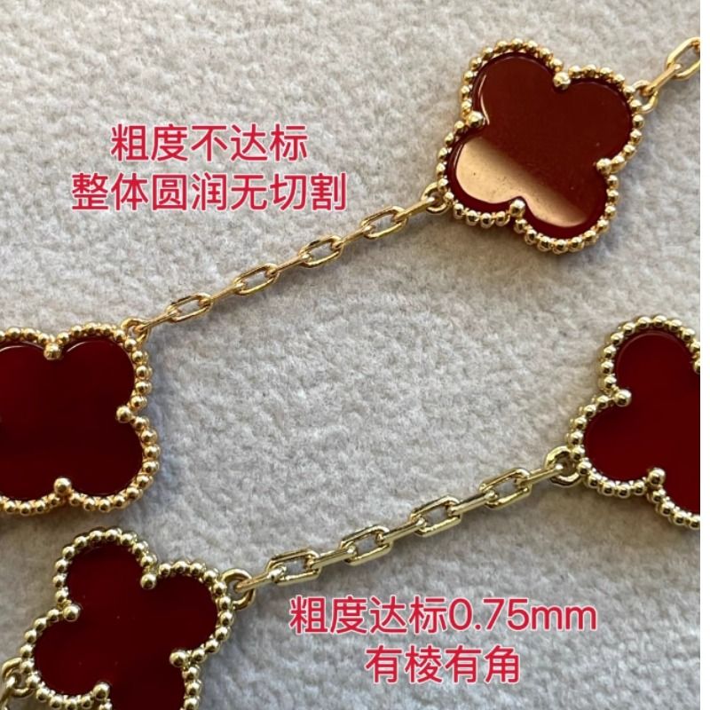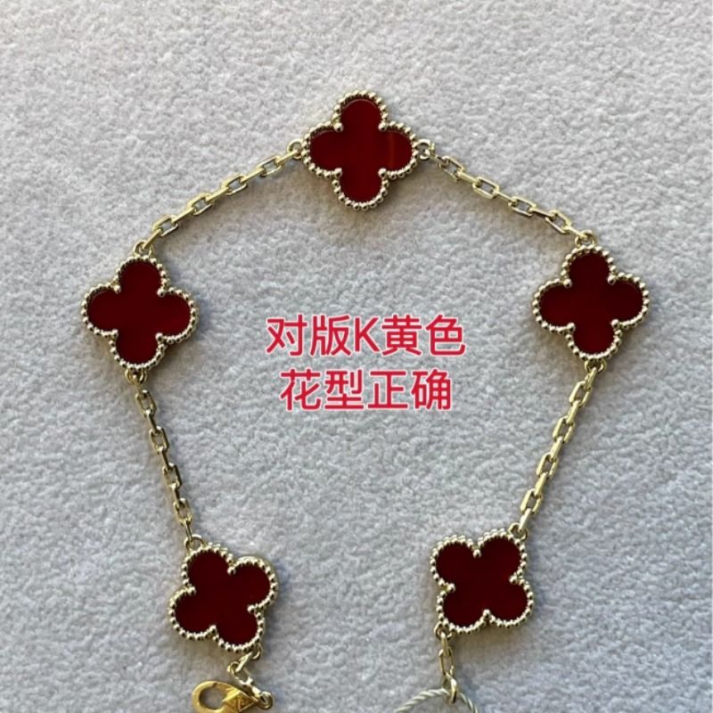幸运草红色四叶草五花手链女镀18K玫瑰金色纯银轻奢叠戴手饰