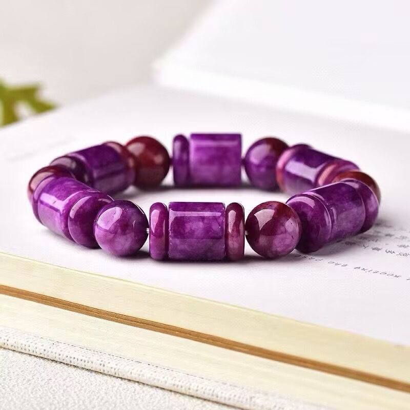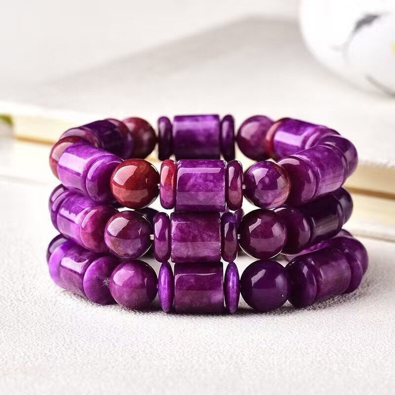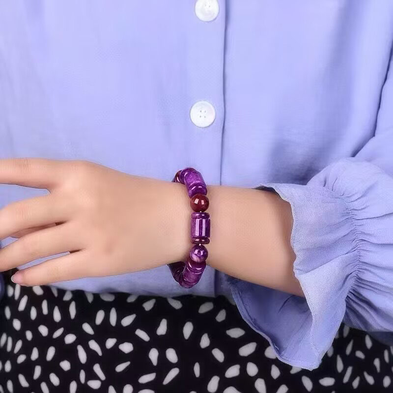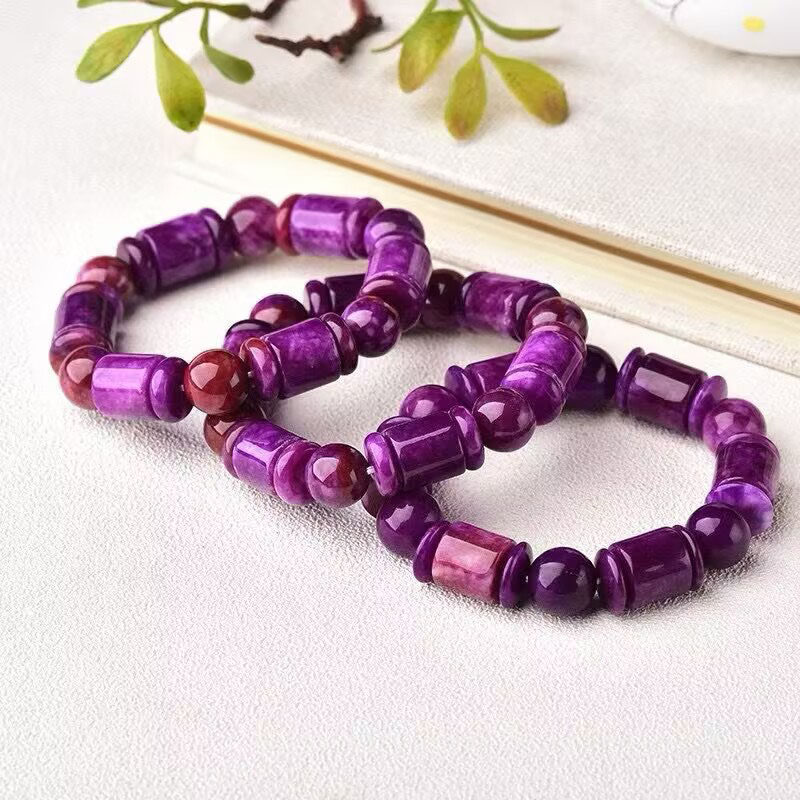 天然紫龙晶柱单圈手串 紫色饰品礼物 散珠子本命年手串