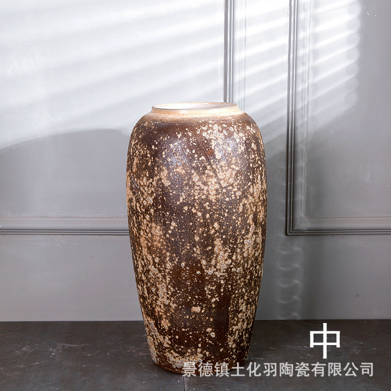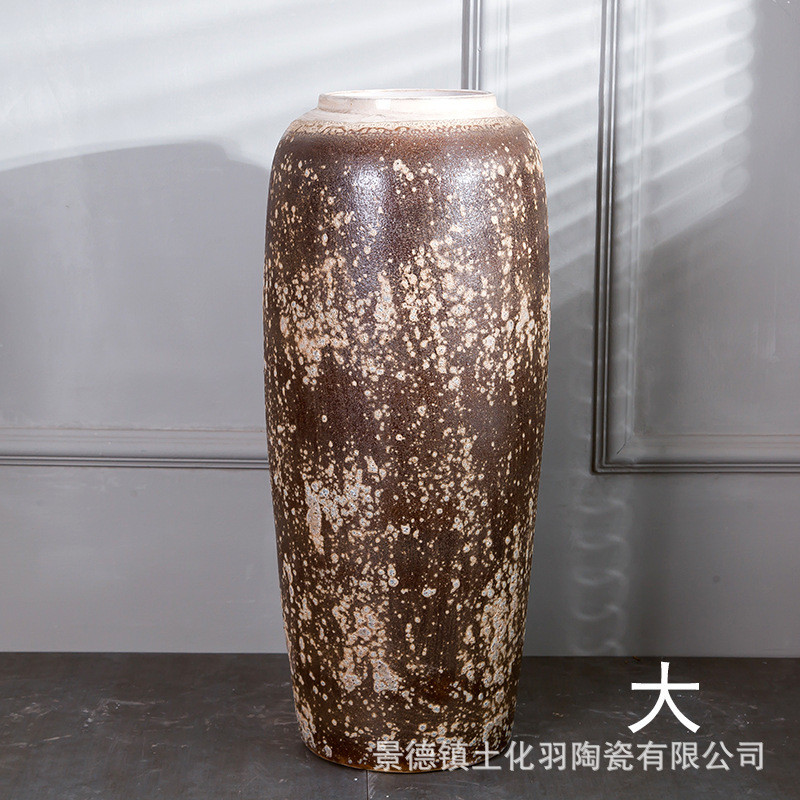 铁锈色景德镇高温效果软装落地大花瓶艺术摆件花器东南亚花插