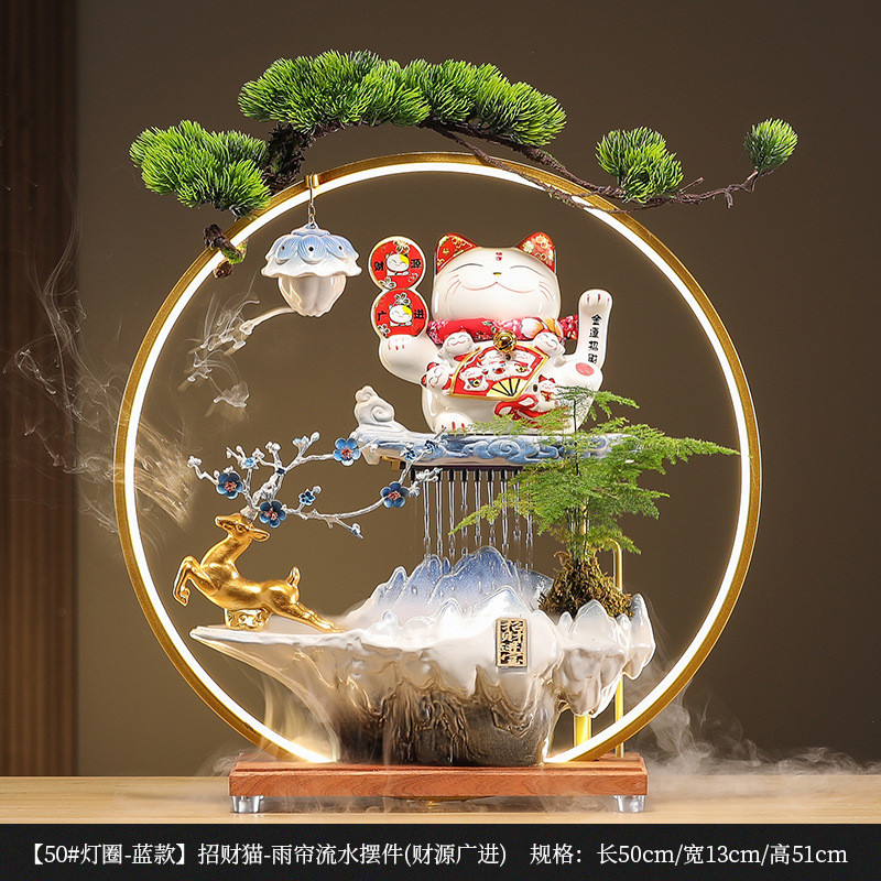 创意招财猫装饰流水生财摆件循环水办公室客厅新中式公司开业礼品