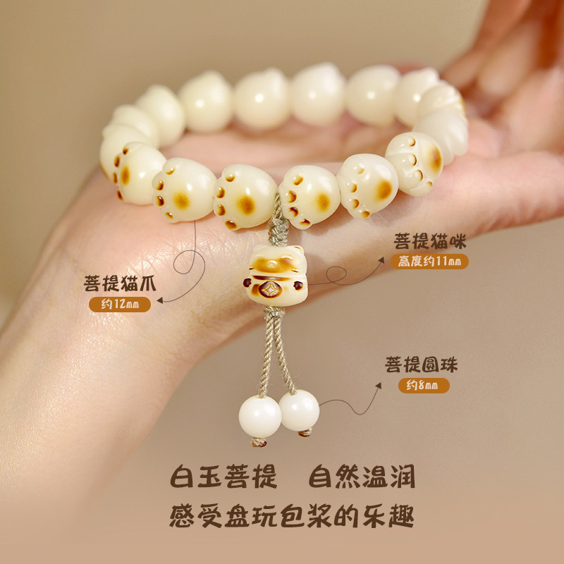 菩提手串女男菩提子猫爪菩提手链文玩绕指柔白玉菩提学生盘玩手串